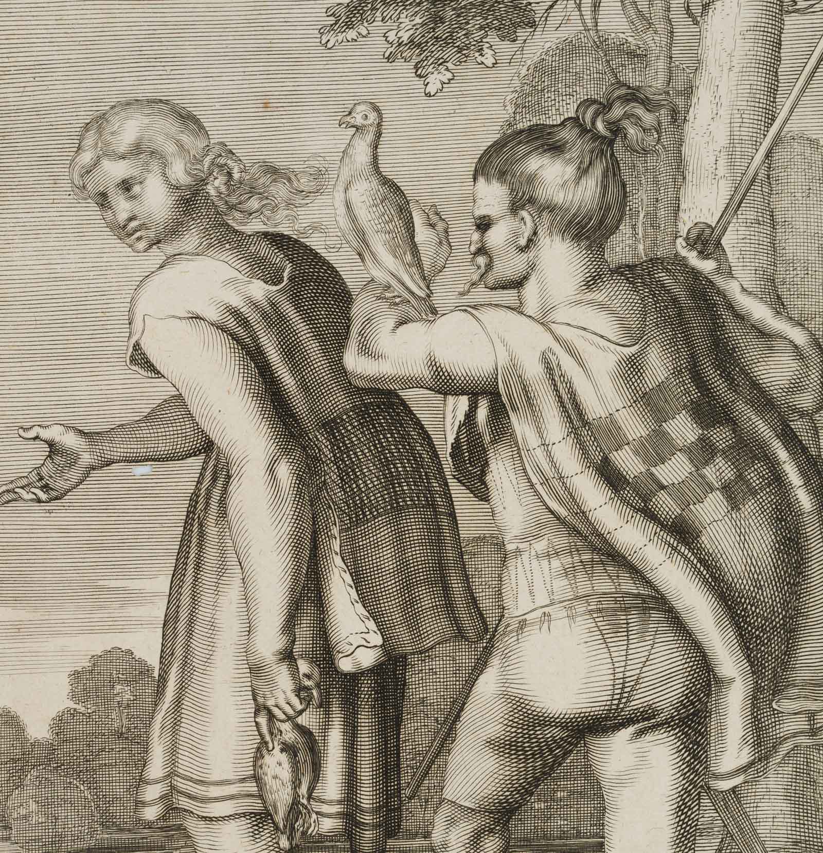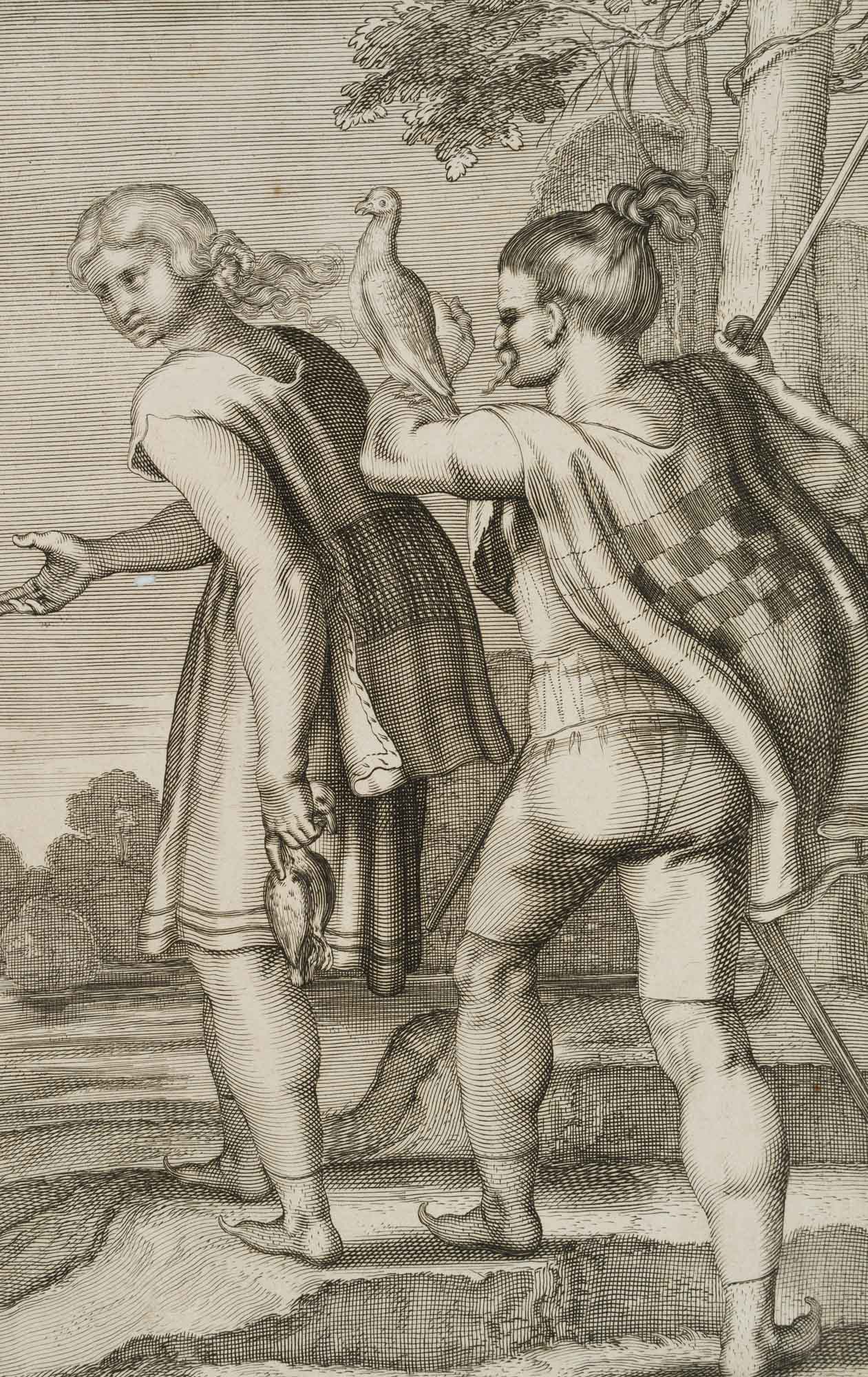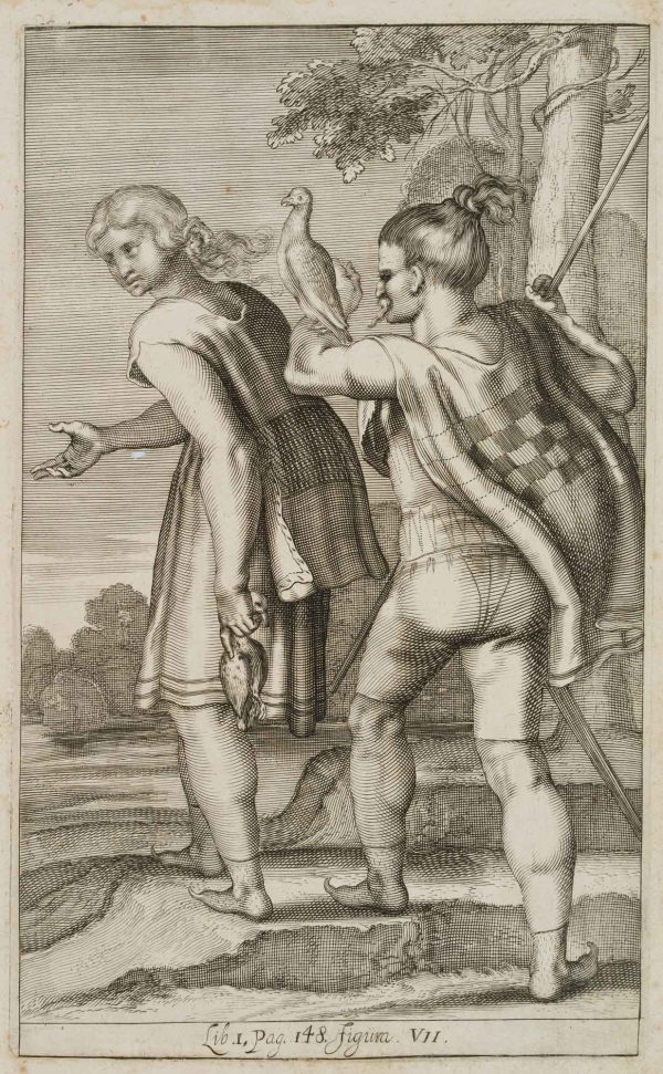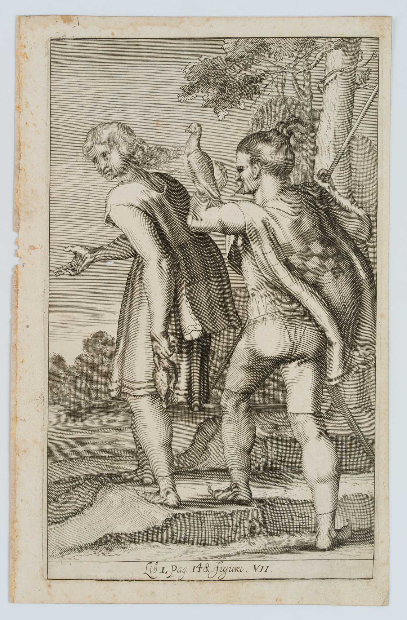 Philipp Clüver (1580 Gdansk – 1622 Leiden), from: “Germaniae Antiquae libri tres Adjectae sunt Vindelicae et Noricum”, Book 1, Two Teutons Hunting Pigeons, c. 1616, Etching