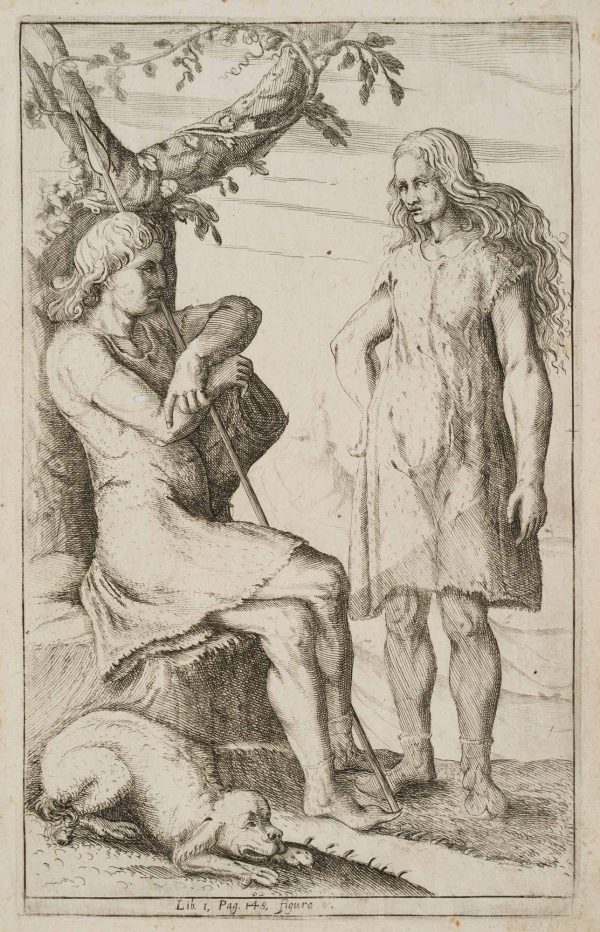 - Description: Beautiful print quality; paginated under the illustration “Lib. 1, Pagina 148, figura V.”; from Philipp Clüver’s main work “Germania antiqua”, published in 1616, with which he decisively contributed to the consolidation of a Germanic iconography that had an impact for centuries. His innovative achievement was to strive for the most historically accurate depiction possible – from the perspective of the time – as the illustrations of the 16th century had still depicted the Germanic protagonists in contemporary fashion or “fantasy costumes”. The etching shown here is from the first volume, which, in addition to two engraved maps, contains a total of 26 unsigned etchings, which were etched by Simon Frisius, Nicolaas van Geilenkercken and a third hand from the circle of the publisher Hendrick Hondius the Elder. Depicted are scenes from the everyday life of the Germanic tribes, their religious rites and customs as well as armed warriors going into battle. The image of the Germanic tribes conveyed in his “Germania antiqua” remained influential for a long time, and Clüver’s impression on the visual arts can be traced well into the 18th century, for example in Daniel Chodowiecki’s “Hermannschlacht” from 1782. Literature: Ulrich Pfisterer, Cristina Ruggero (eds.): Phönix aus der Asche. Bildwerdung der Antike – Druckgrafiken bis 1869, Munich 2019, pp. 33-35.