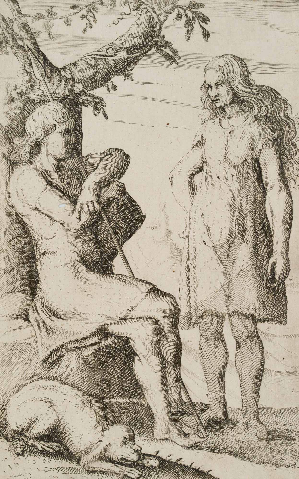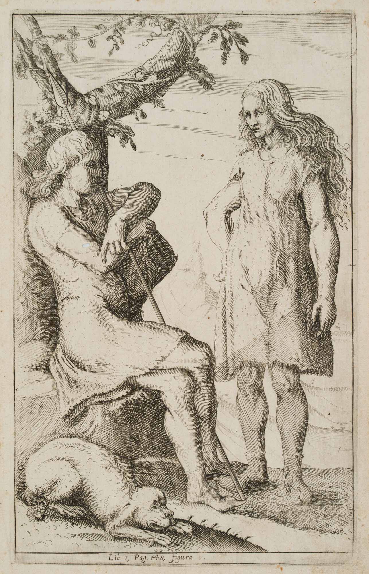 Philipp Clüver (1580 Danzig – 1622 Leiden), Rastende Germaninnen, aus: “Germaniae Antiquae libri tres. Adjectae sunt Vindelicae et Noricum”, Buch 1, Tafel zu S. 148, um 1616, Radierung