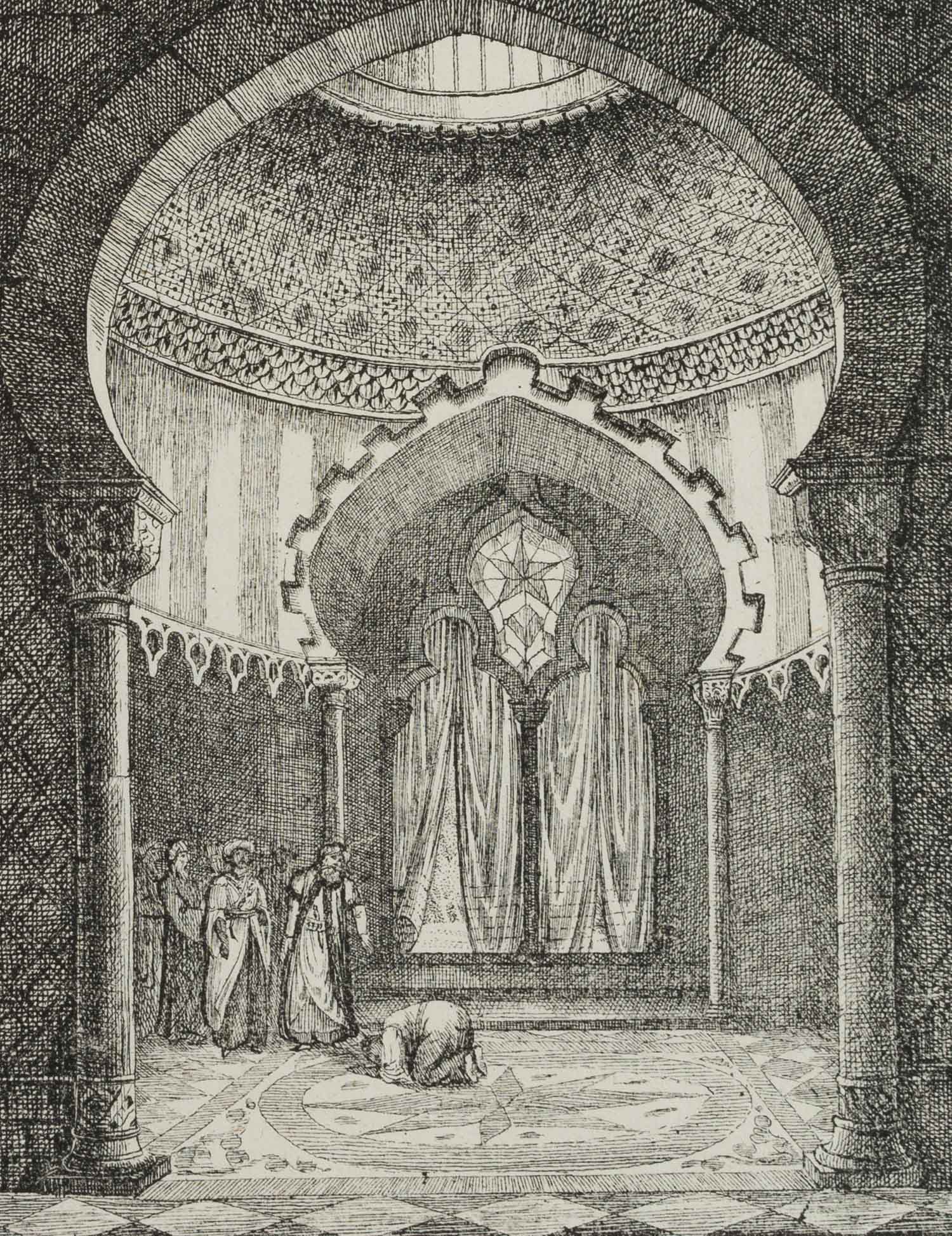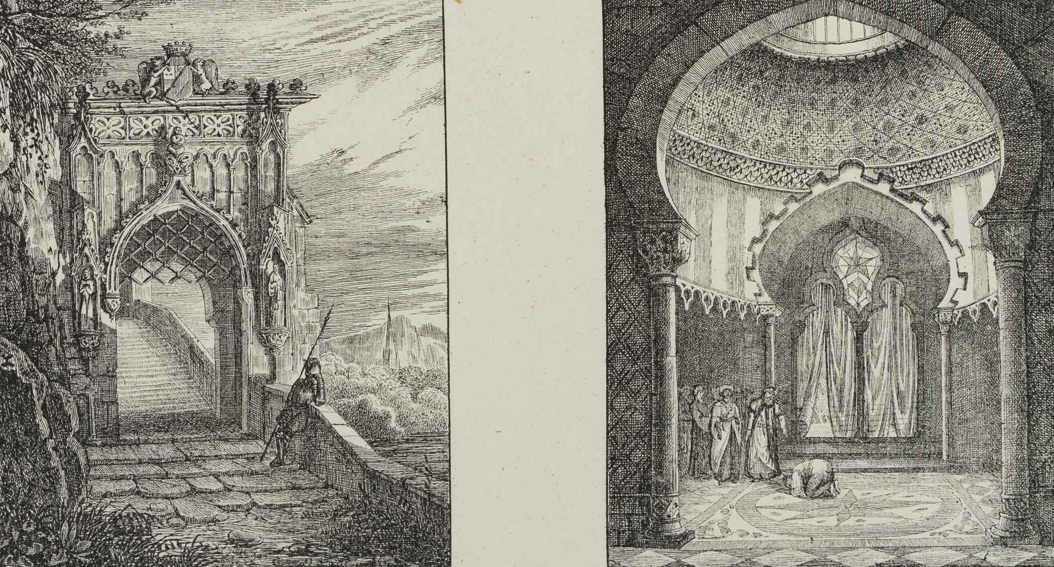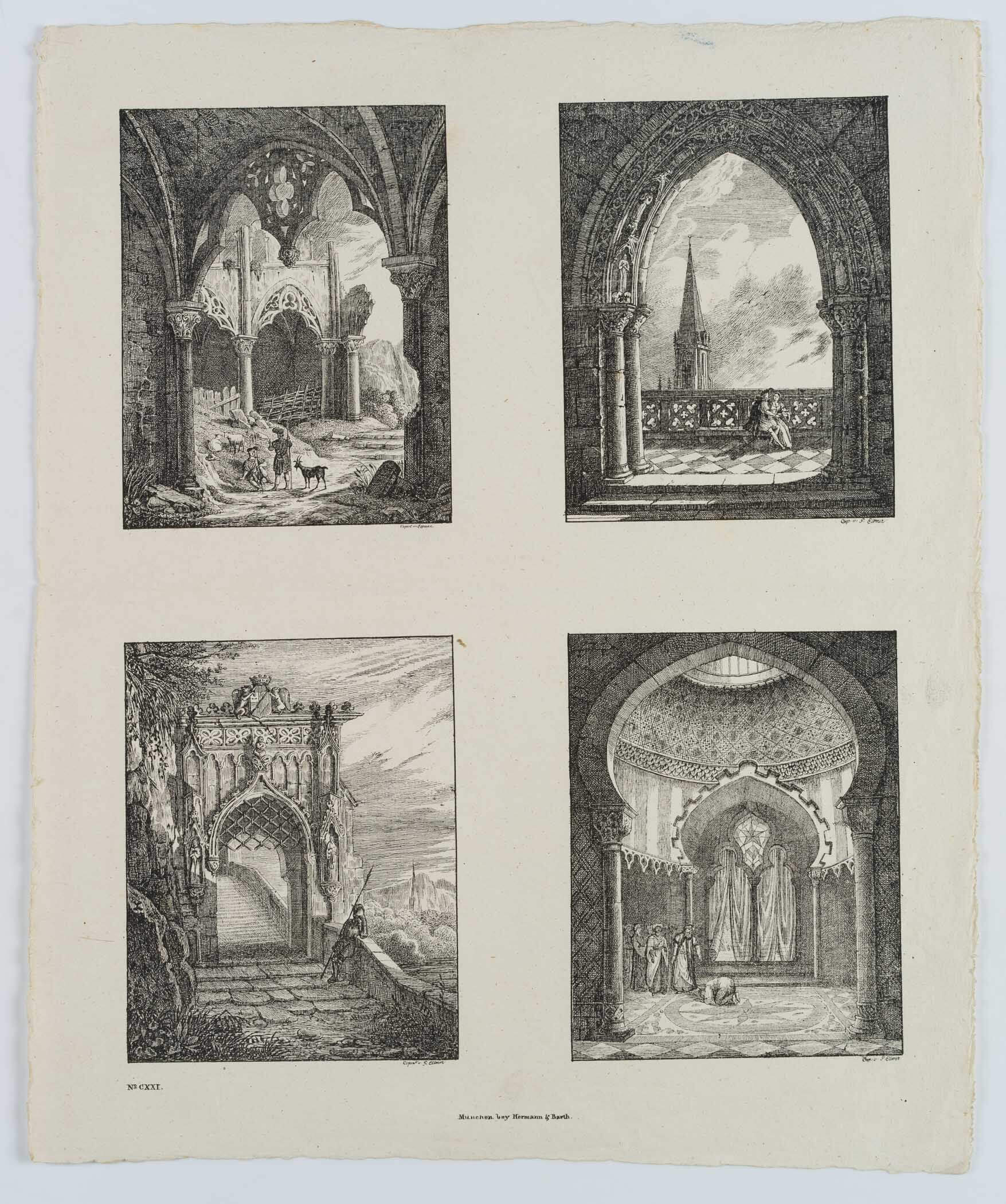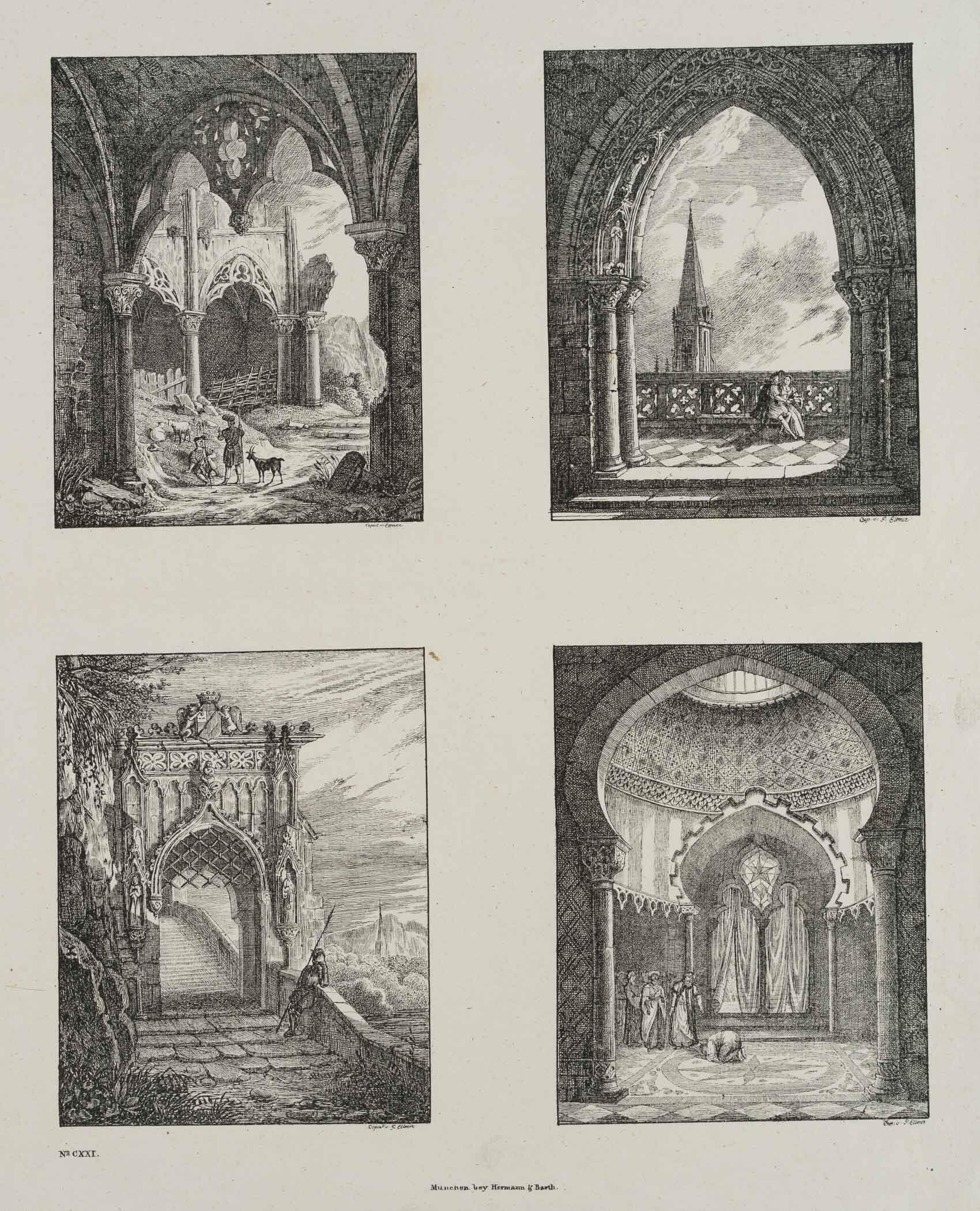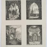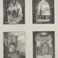 Peter Ellmer (1793 Regensburg – 1872 Freising), Vier Darstellungen von einer maurischen Palastanlage, um 1830, Federlithographie