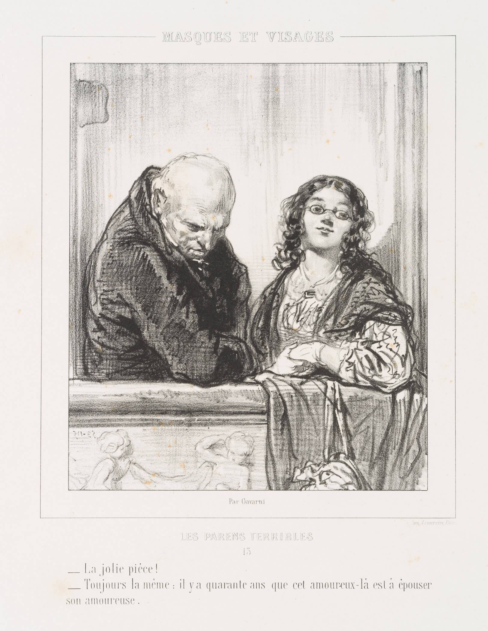 Paul Gavarni (1804 Paris – 1866 ebd.), ‘Masques et Visages. Les parents terribles 13’ , 19. Jahrhundert, Lithographie