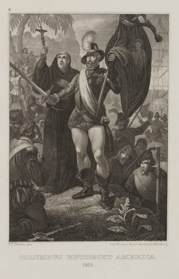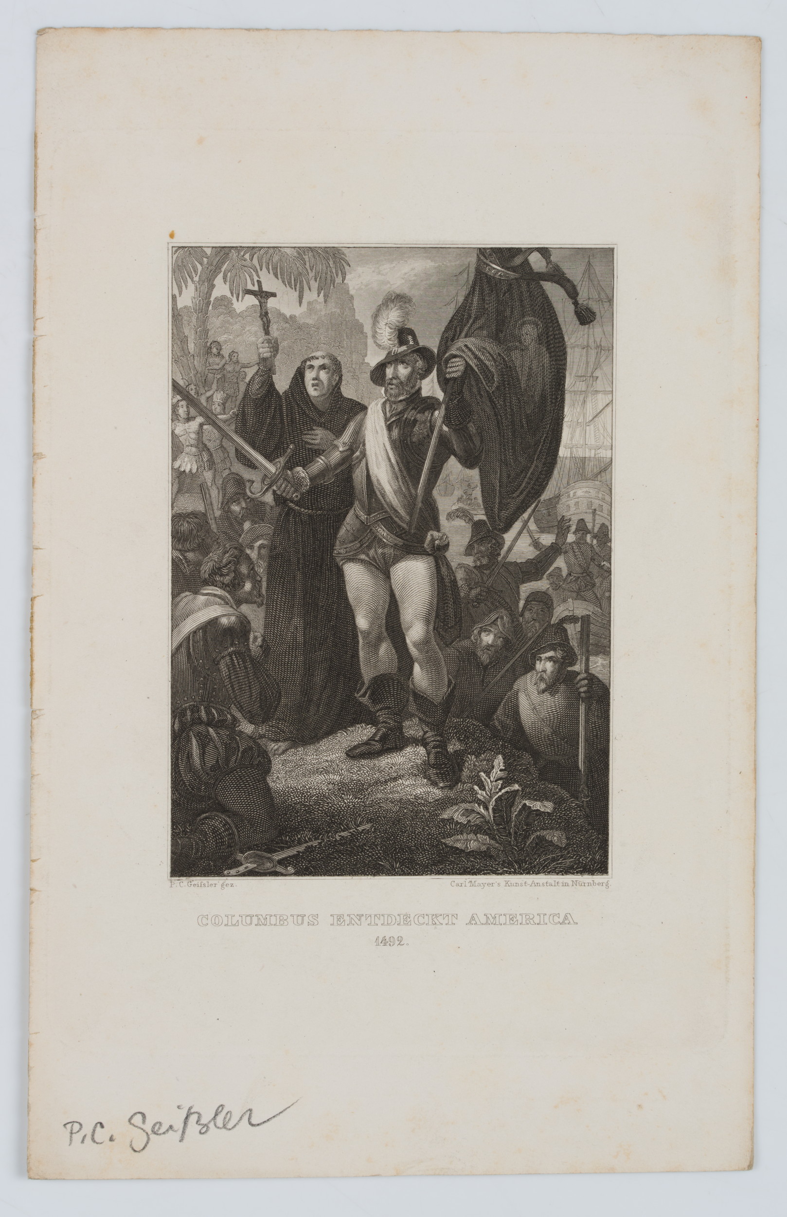 Peter Carl Geissler (1802 Leipzig – 1872 Nürnberg), Columbus entdeckt Amerika, 19. Jahrhundert, Stahlstich