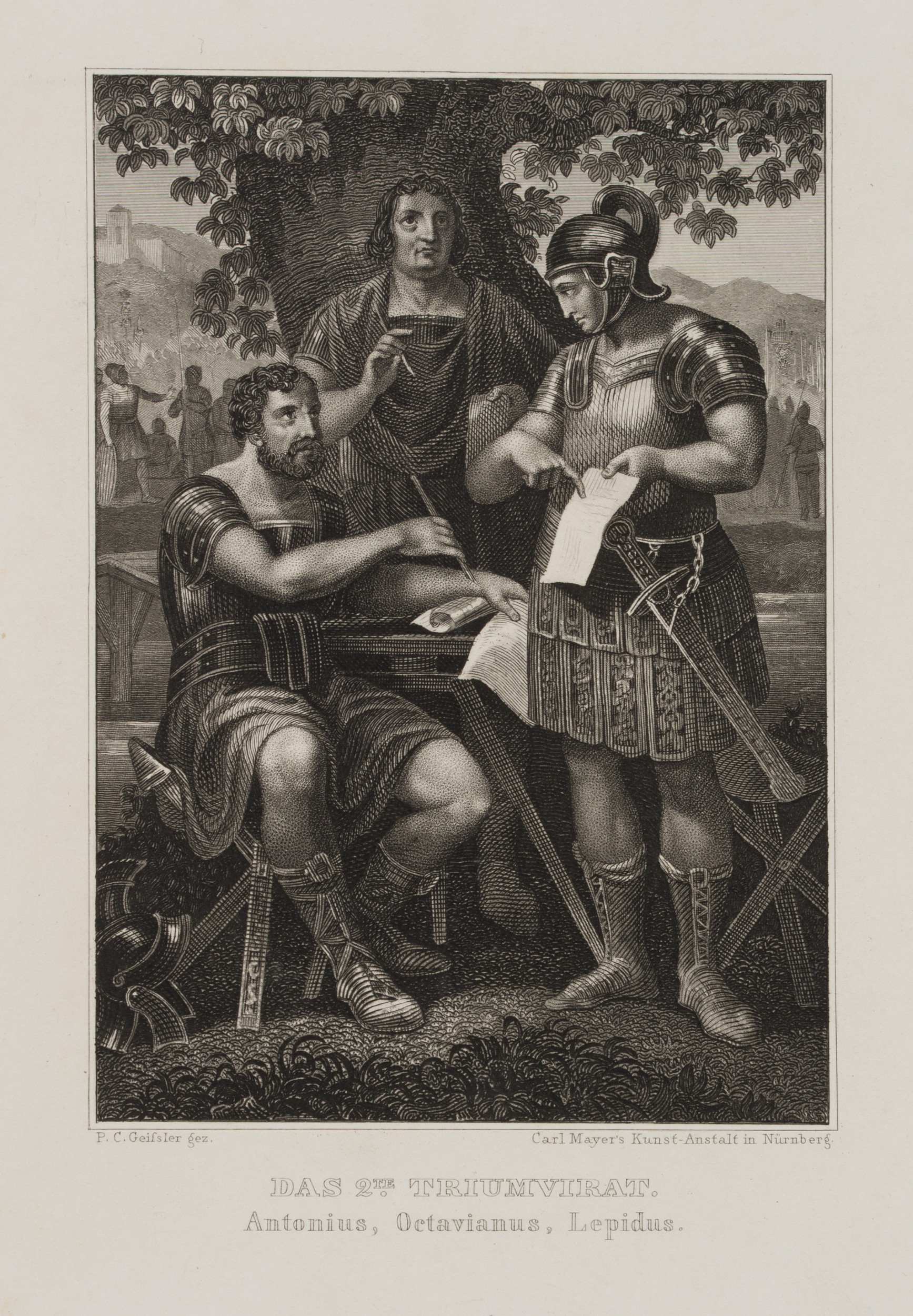Peter Carl Geissler (1802 Leipzig – 1872 Nürnberg), Das zweite Triumvirat, 19. Jahrhundert, Stahlstich