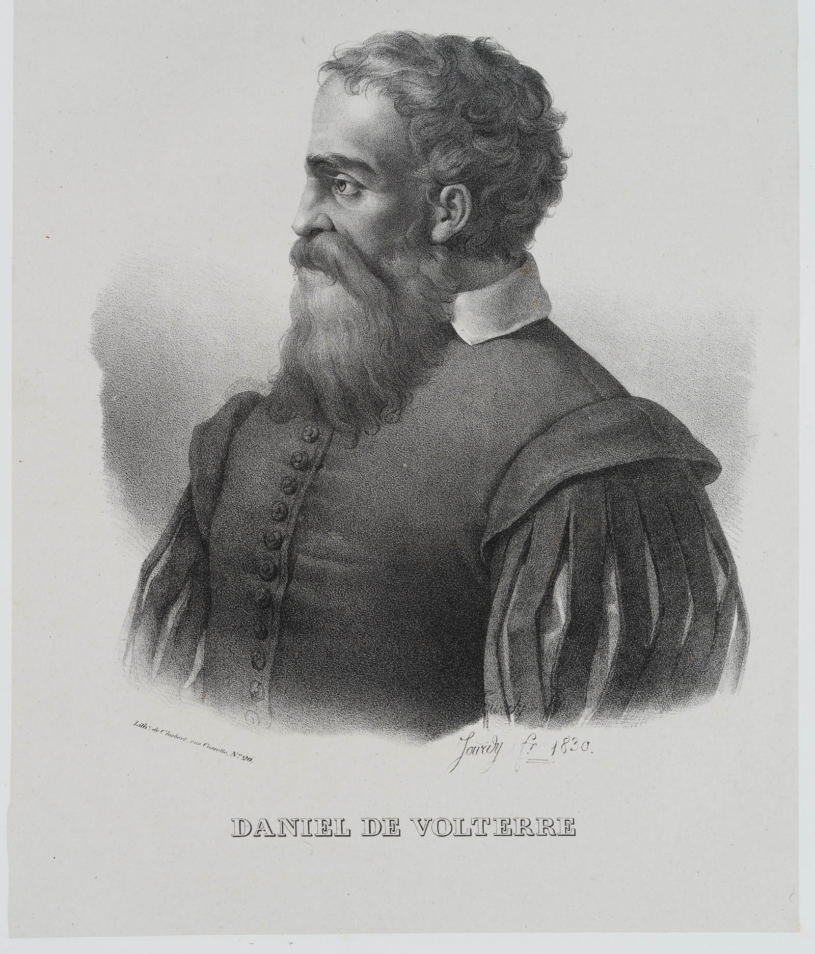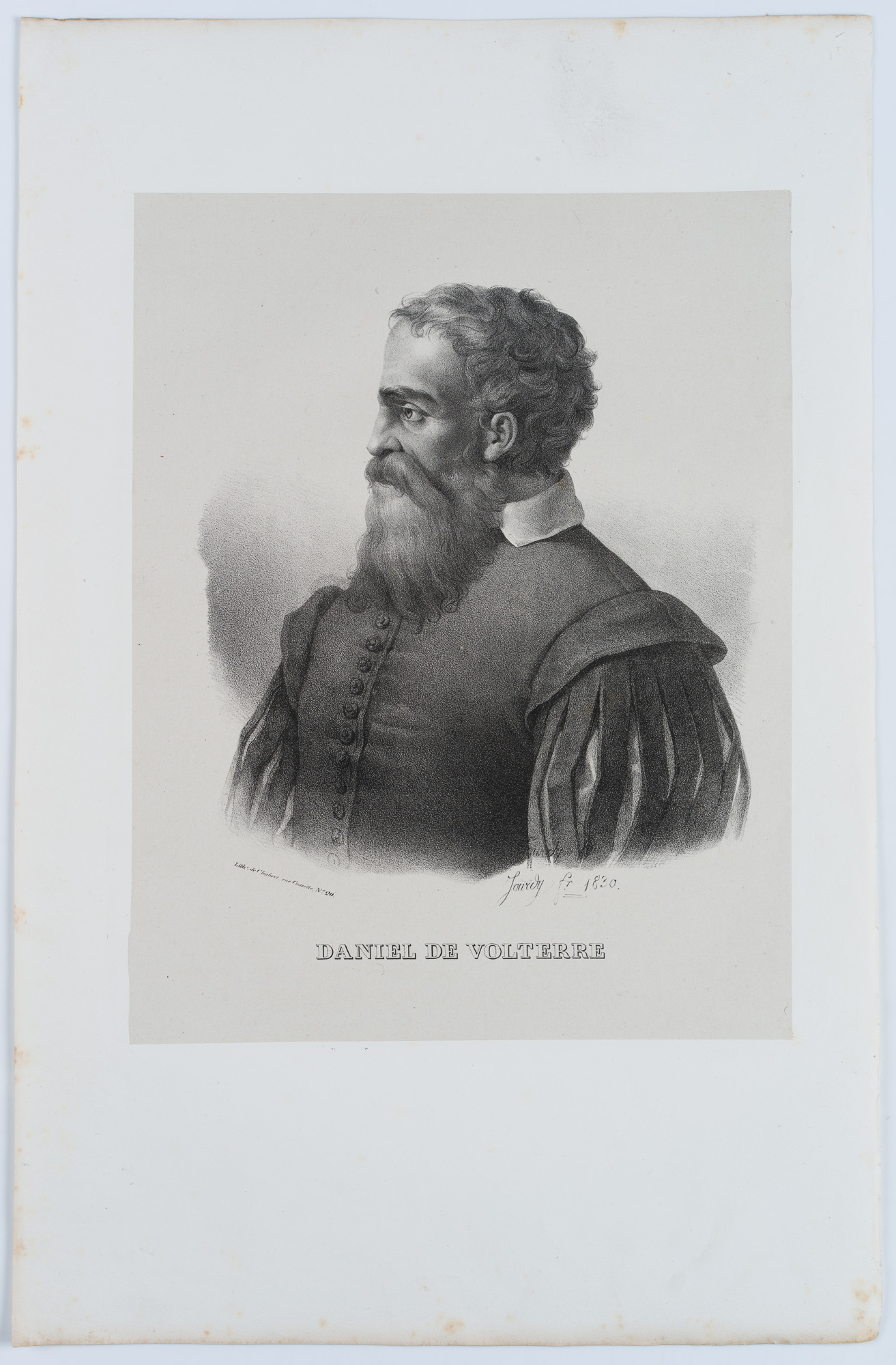 Paul Jourdy (1805 Dijon – 1856 Paris), Porträt des Daniele da VOLTERRA (1509 Volterra, Toskana – 1566 Rom), italienischer Maler und Bildhauer, 19. Jahrhundert, Lithographie
