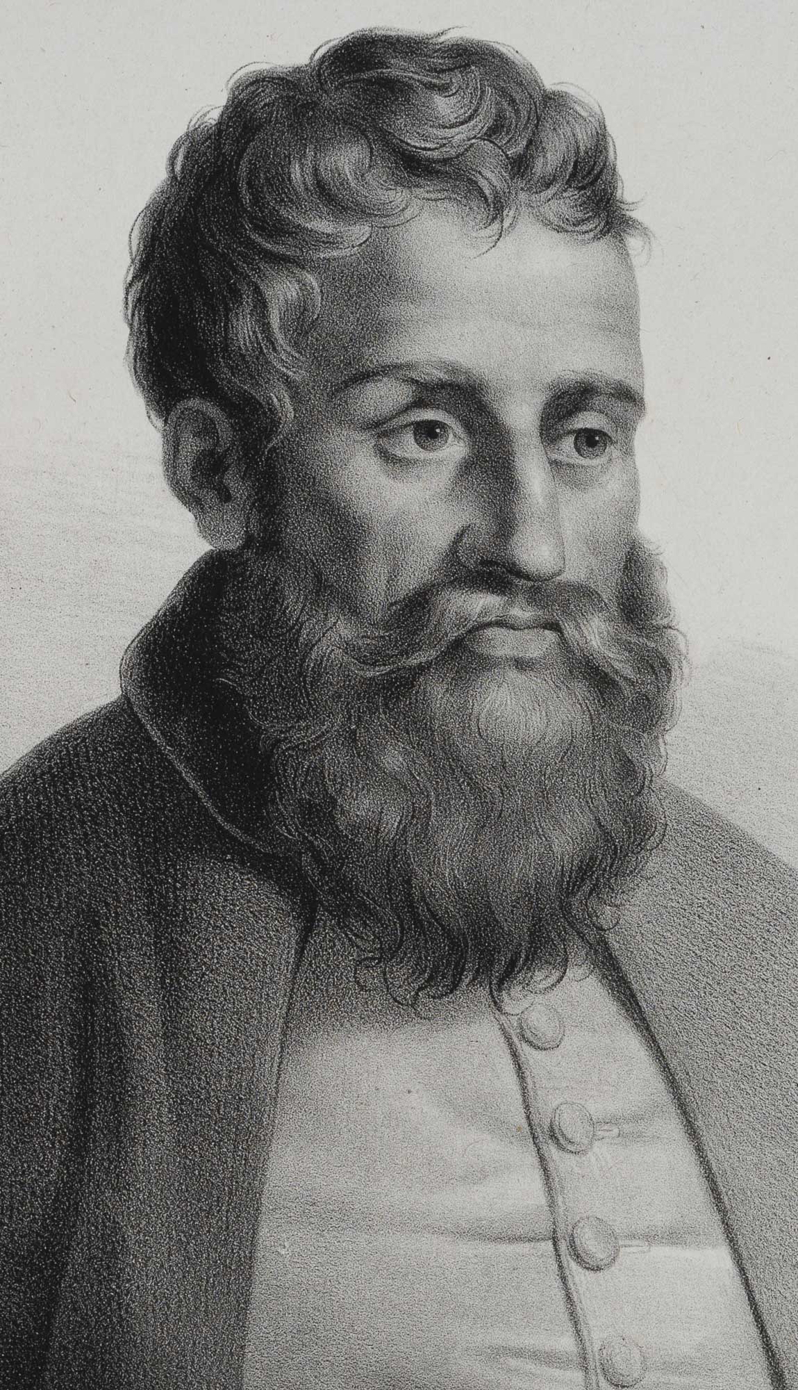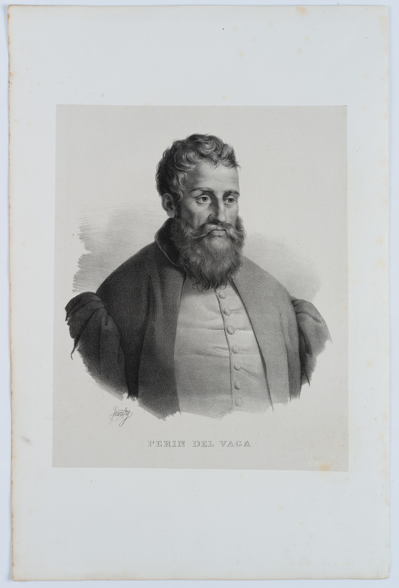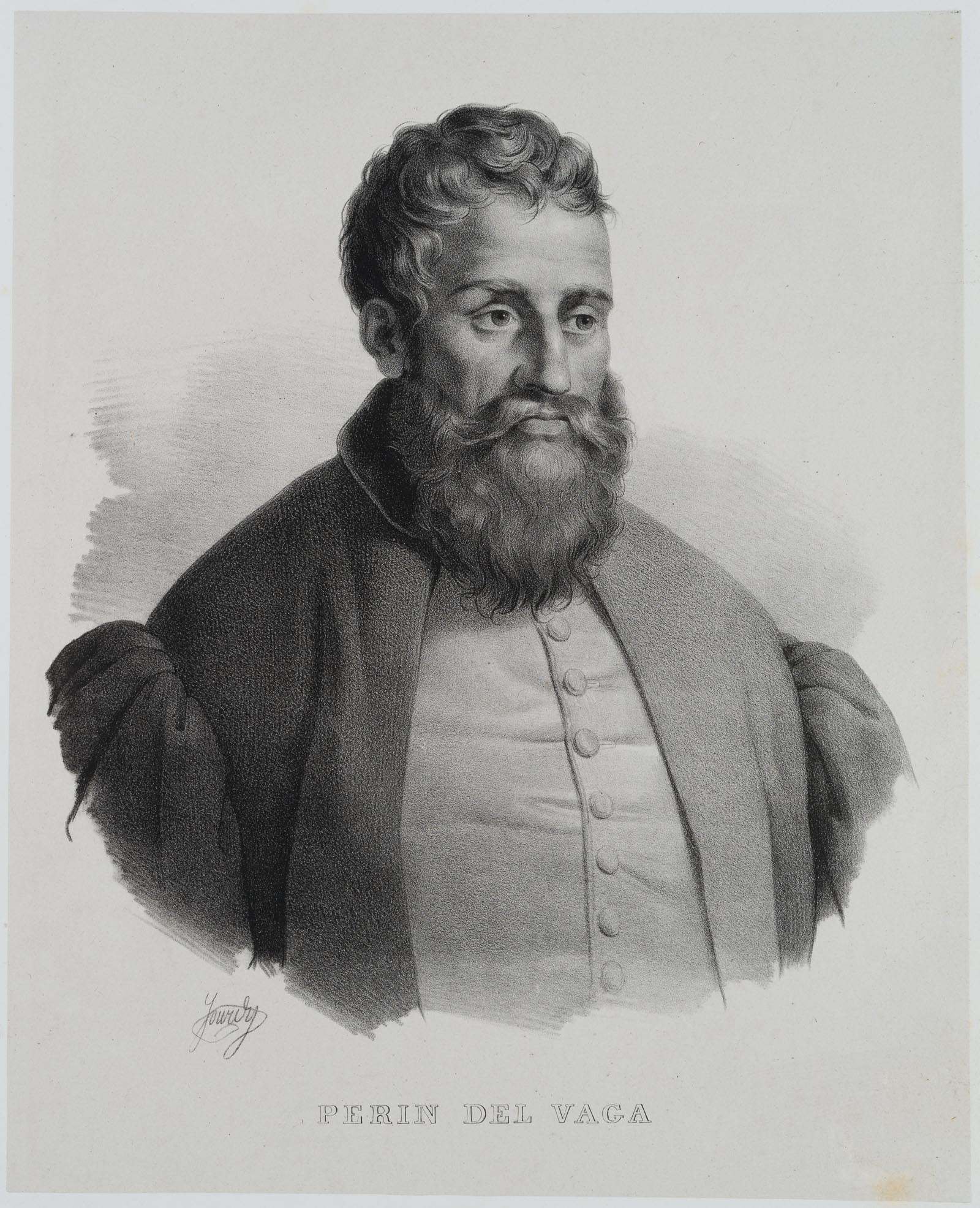 Paul Jourdy (1805 Dijon – 1856 Paris), Portrait of the Italian artist PERINO DEL VAGA, actually Pietro Buonaccorsi (1501 Florence – 1547 Rome), Renaissance painter and plasterer, 19th century, Lithography