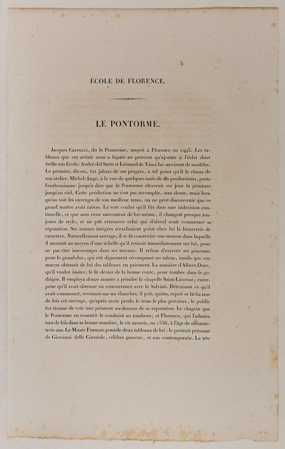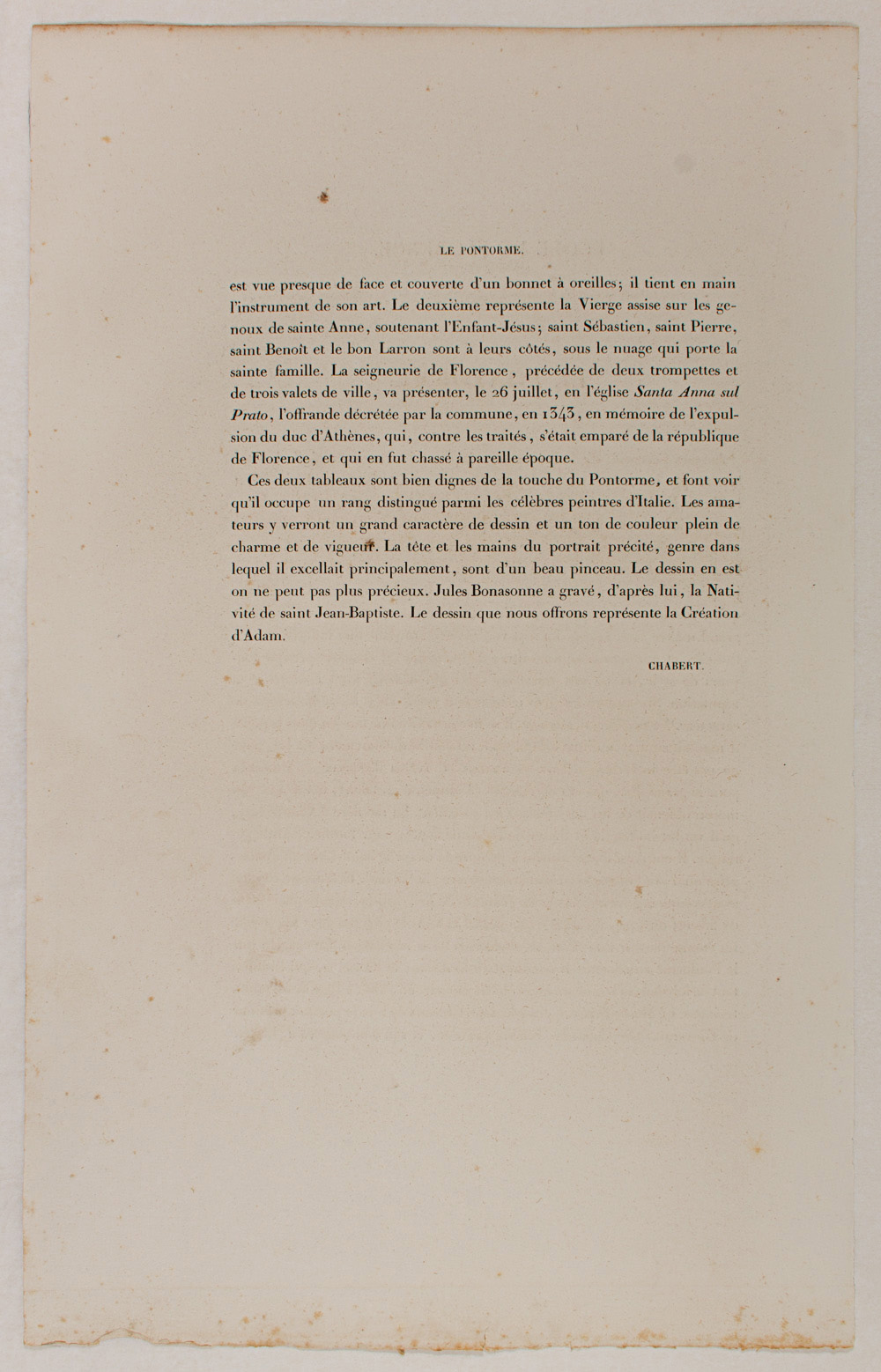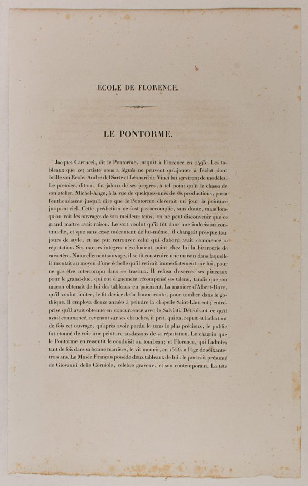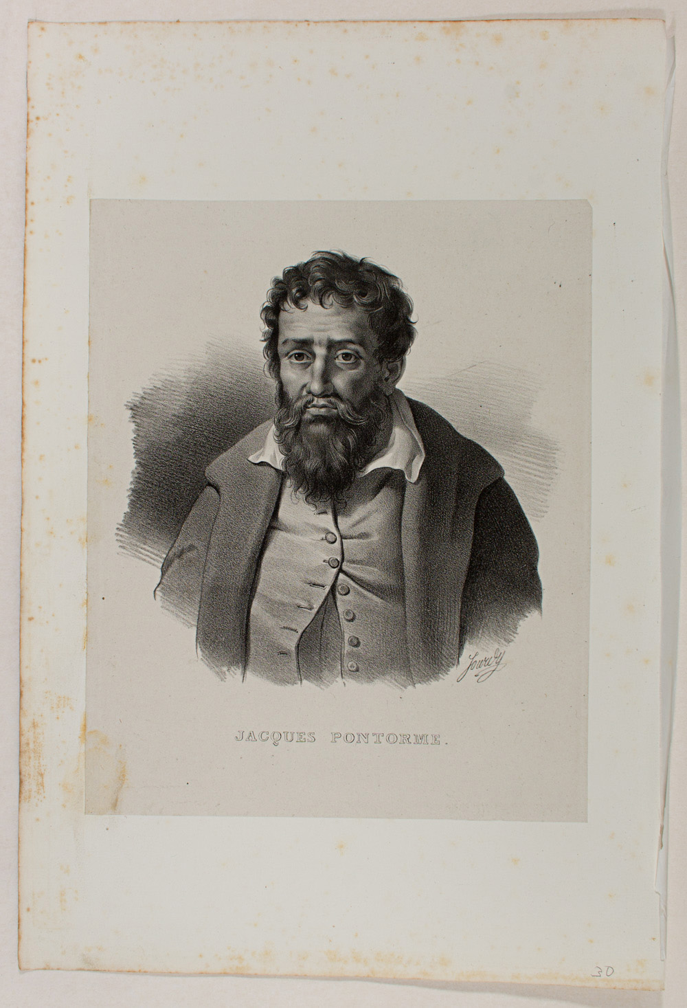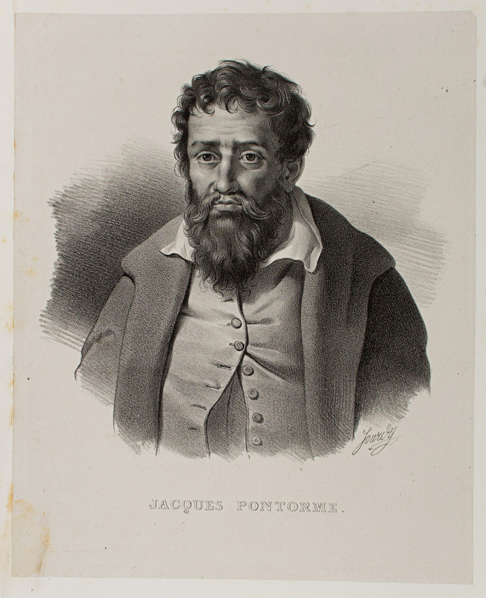 - Description: Portrait: Jacques Pontorme (1493 – 1556), painter of the Romanesque School. Lithograph. Inscribed: JACQUES PONTORME. Signed: Jourdy. Separate text information (In French by Chabert.
