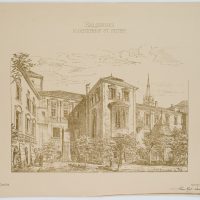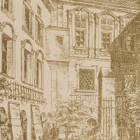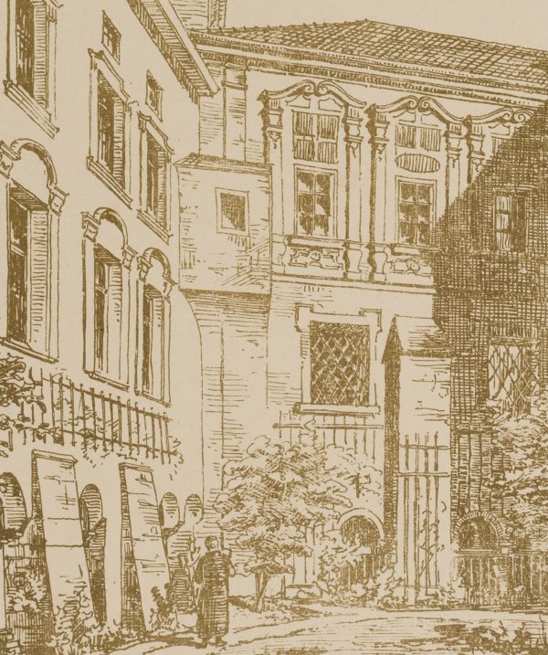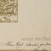 • Description: Titled in the centre above the image, in the left corner of the sheet: “Heft XXVIII”; on the right: “Blatt 4. Signed below the image and with dedication: “aufgen. von J.D. Landré / autogr. von Paul Roth / Herrn Karl Schradin [German architect, active in Karlsruhe] gewidmet von J. W. Landré, München im Okt. 91”.