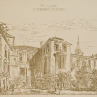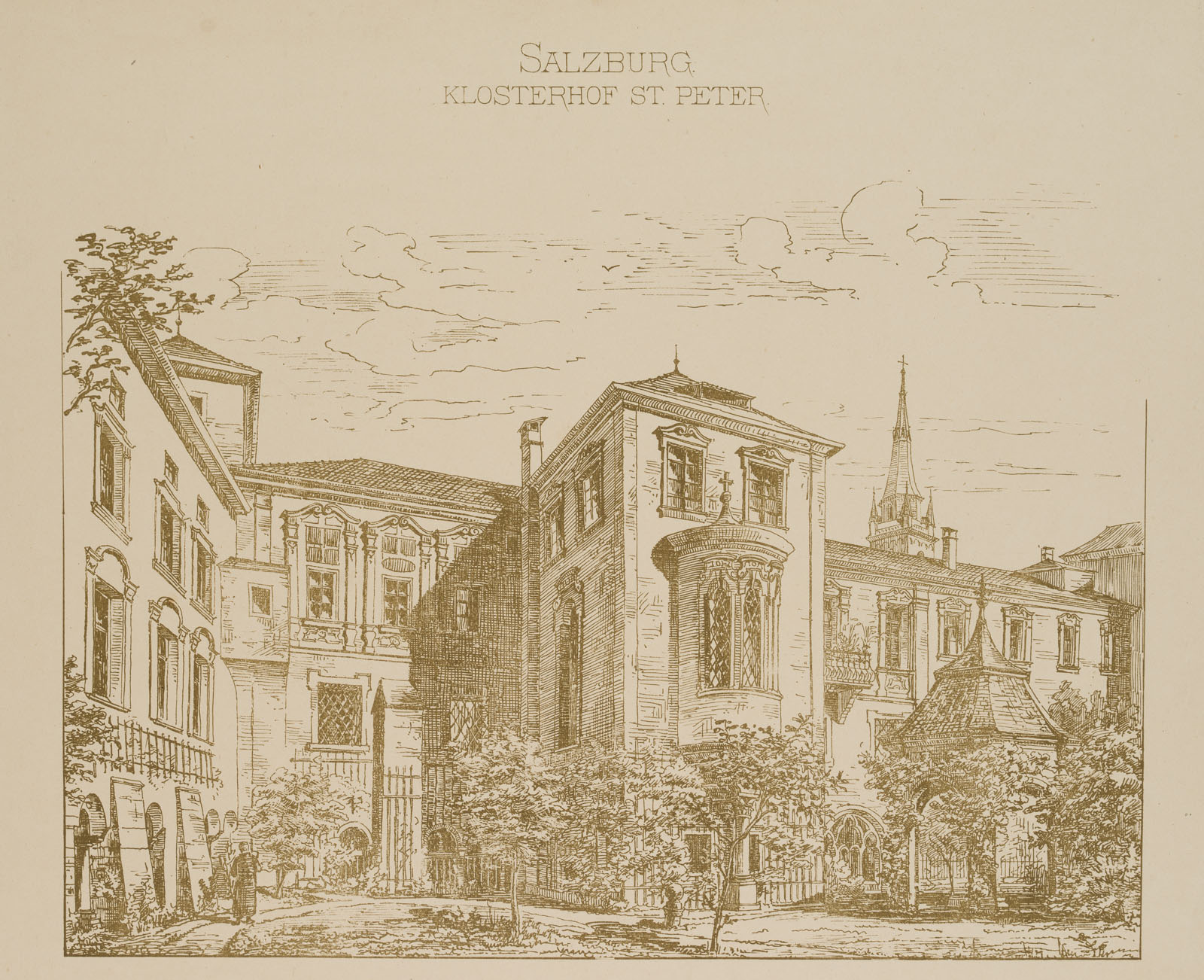 Paul Roth (19. Jahrhundert), Salzburg, Klosterhof St. Peter, um 1891, Lithographie