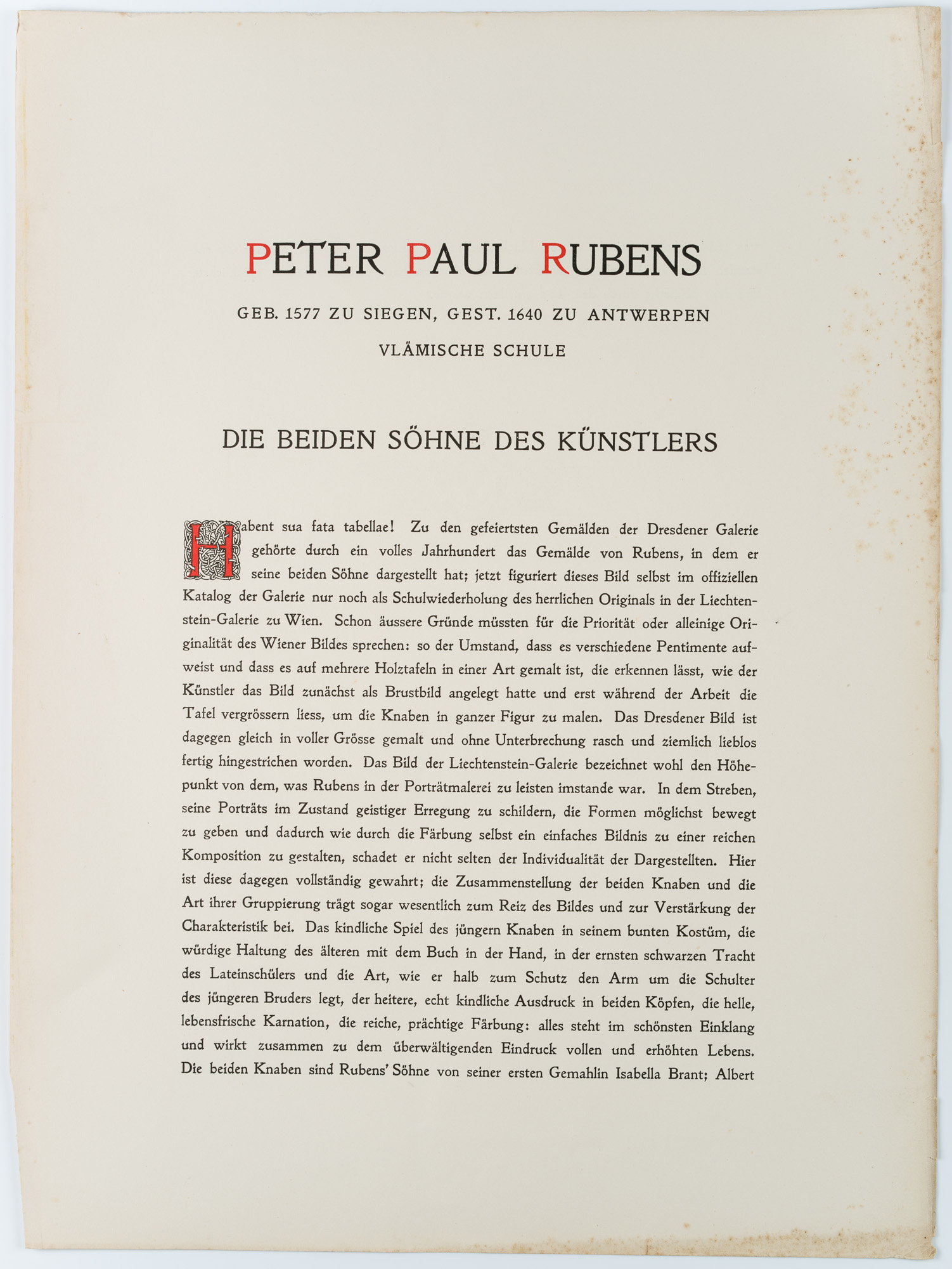 Peter Paul Rubens (1577 Siegen – 1640 Antwerp), Double portrait in full-length of the artist’s sons, Albert and Nikolaus Rubens, (c 1626/27) Galerie Liechtenstein, Vienna, from a catalogue of masterpieces, 1905, Photogravure