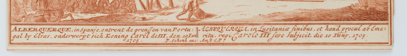 - Bezeichnung: Unterhalb der Darstellung bezeichnet in Niederländisch und Latein. In der Platte signiert und mit Ortsangabe: “Pet. Schenk exc. Amst C. P.”.