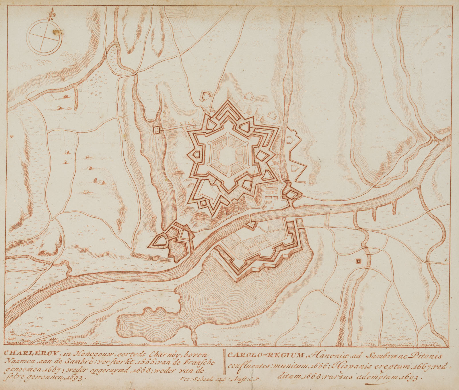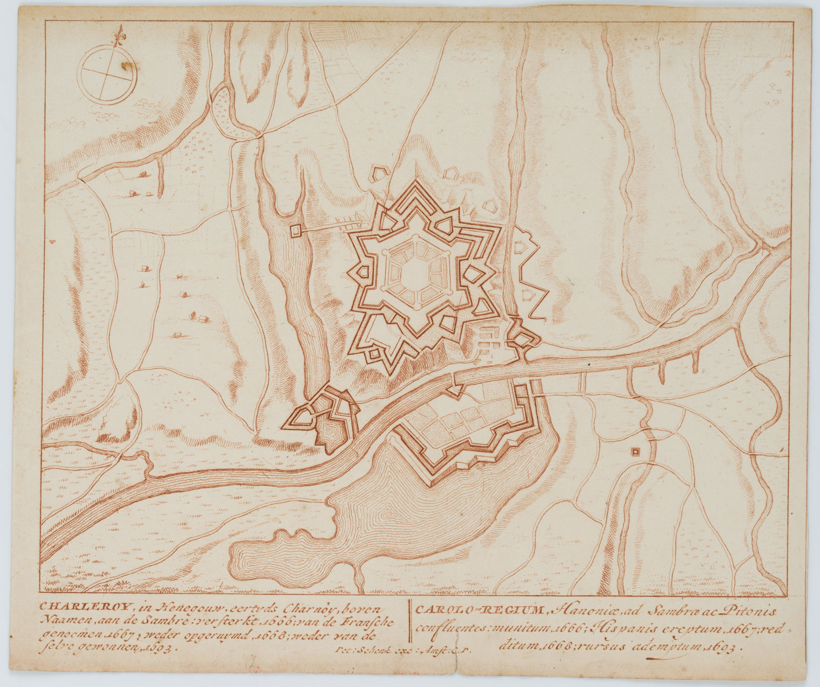 - Description: View of the city of Charleroi, 50 km south of Brussels, with a ring of fortifications. From: Se: Frederik den Femtes Atlas, vol. 12, tvl. 57. Peter Schenk the Elder was a German engraver and cartographer from Elberfeld, now part of Wuppertal. Around 1684 he moved to Amsterdam and became a pupil of Gerard Valck, specialised in mezzotint; he travelled to Leipzig and Berlin. Until his death in 1718/19 he published numerous maps and pictures.