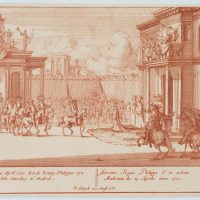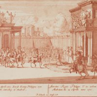 - Inscription: Inscribed below the image in Dutch and Latin „Den 14 April 1701 doet de koning Philippus zyn / Plégtelyke intreding te Madrid / Introitus Regis Philippi V en urbem / Madritum die 14 Aprilis anno 1701. Signed in the plate and with indication of place: „Pet. Schenk exc. Amst C. P.“.