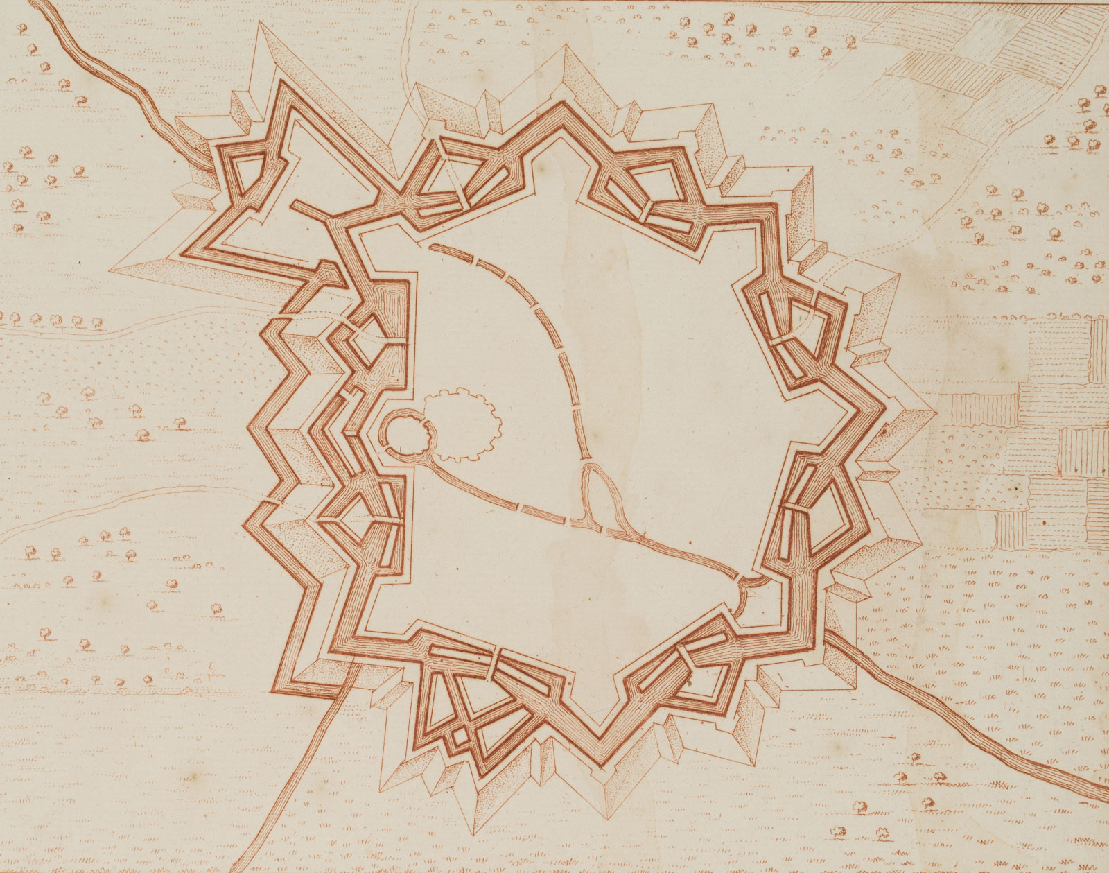 Pieter Schenk (1660 Elberfeld – 1718 Amsterdam), Fortification plan, “Ath”, Hainaut, Belgium, c. 1712, Copper engraving