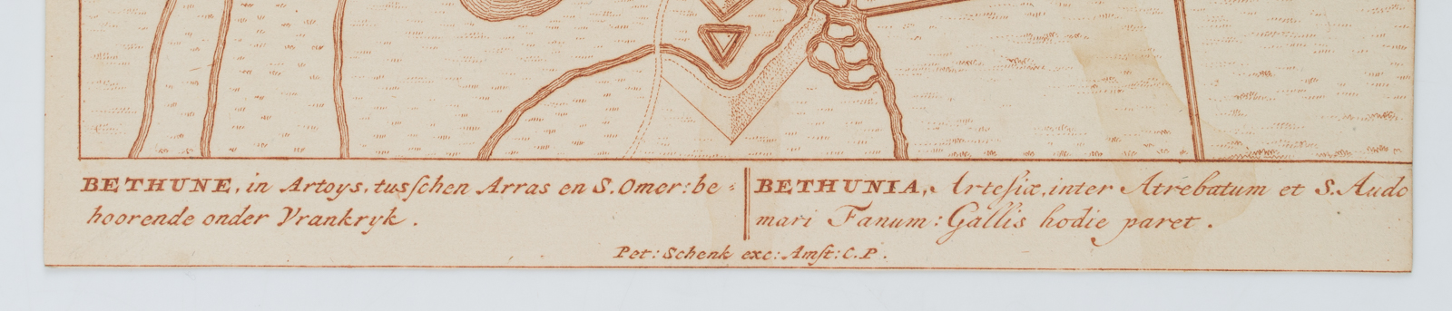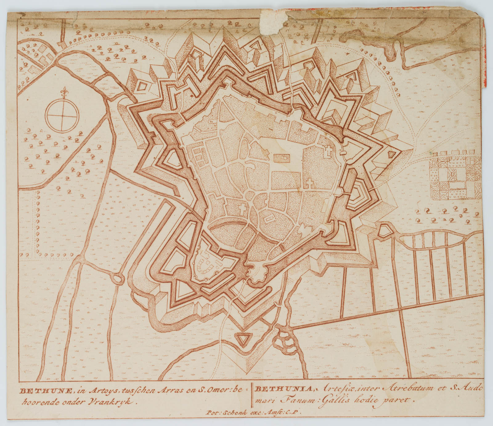 Pieter Schenk (1660 Elberfeld – 1718 Amsterdam), Kupferstich Plan Béthune, Frankreich, um 1712, Kupferstich