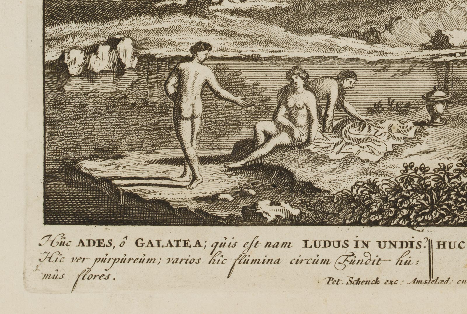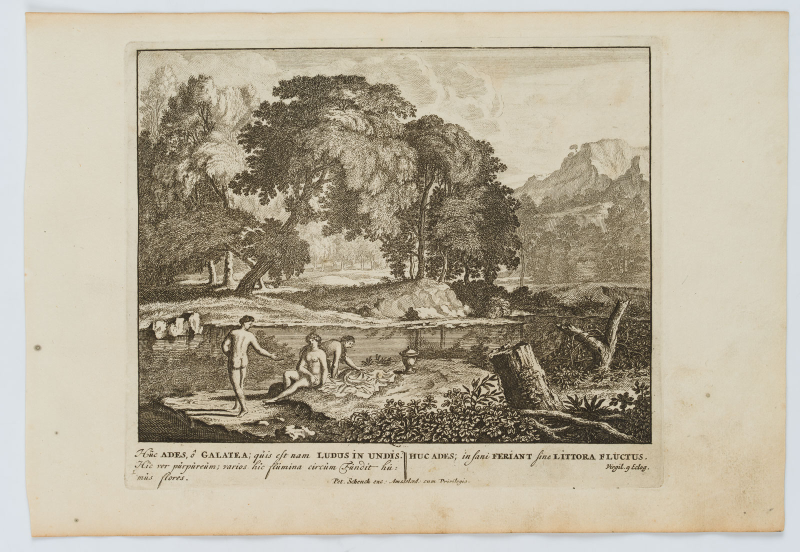 Pieter Schenk (1660 Elberfeld – 1718 Amsterdam), Landscape with Nereid Galatea, after Virgil, , Mezzotint