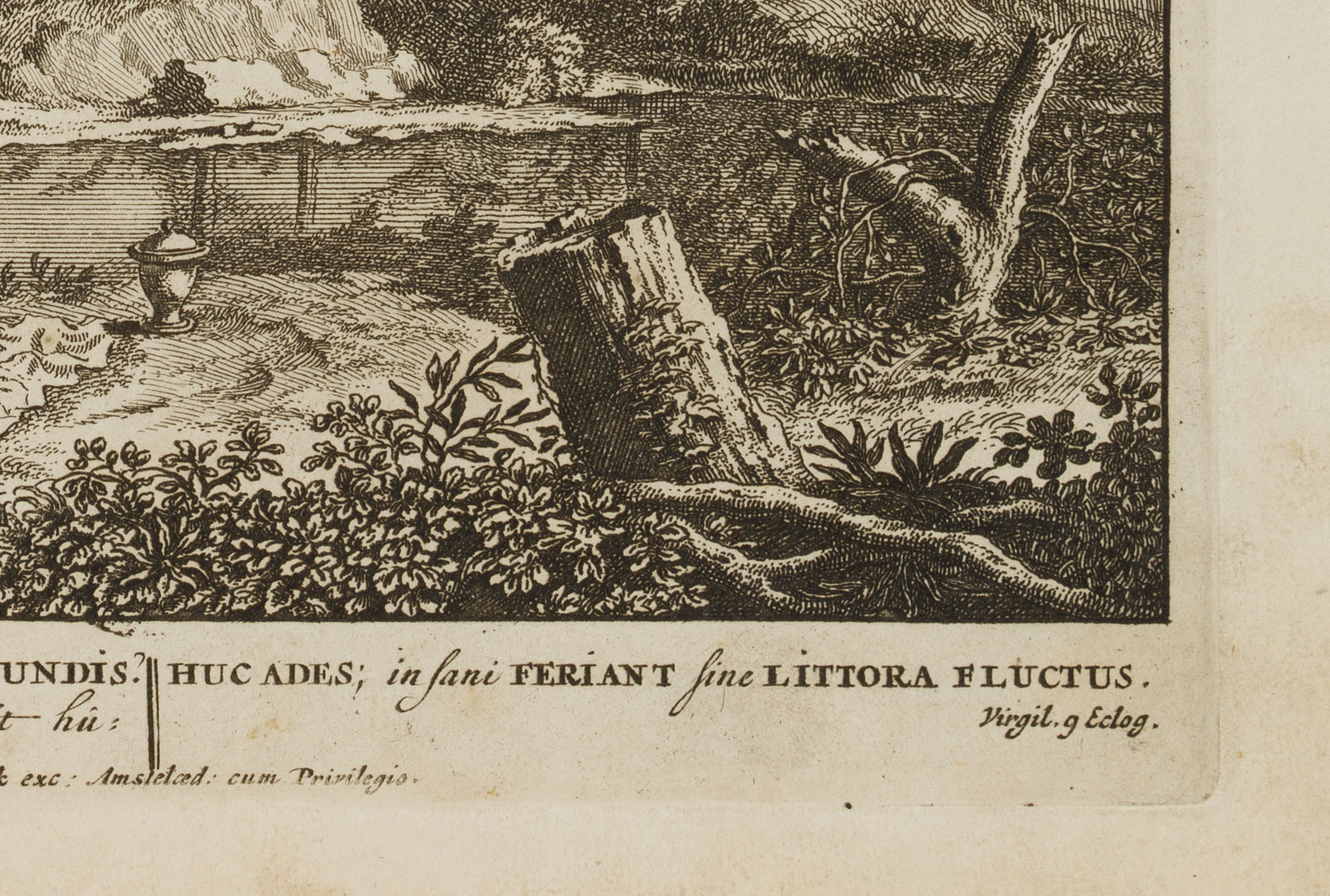 - Bezeichnung: Unten in der Druckplatte mit Zitat aus Vergils 9. Ekloge bezeichnet. Darunter in der Druckplatte signiert.