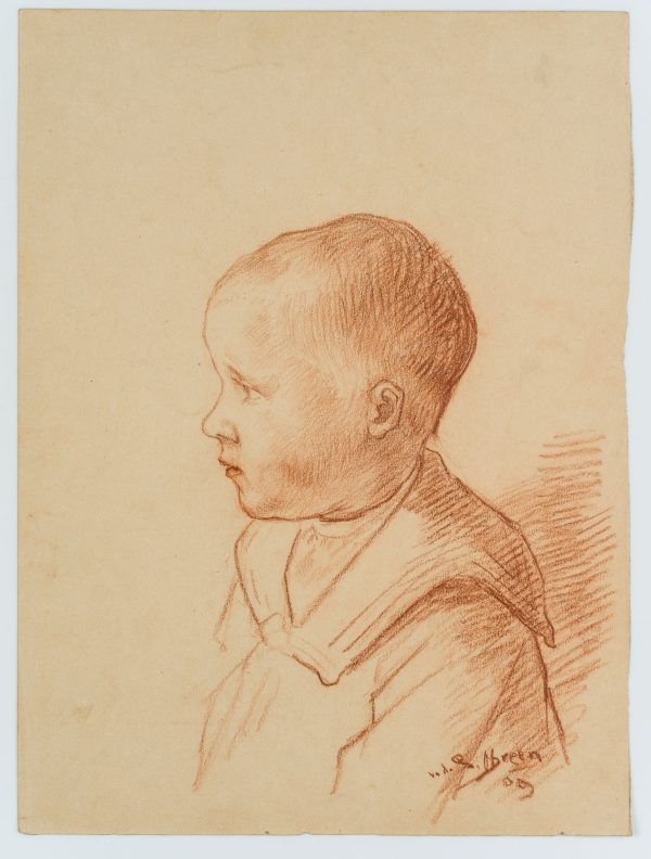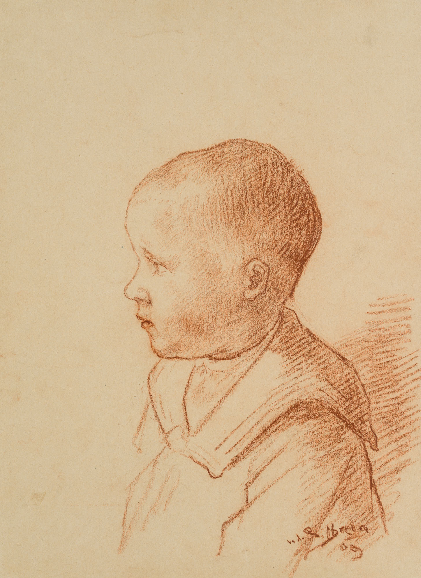 Pieter Daniel van der Speck Obreen (1888 Wieringen – 1950 Den Helder), Porträt eines Jungen im Profil, 1909, Rötel