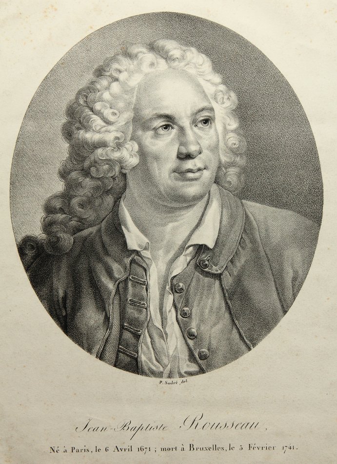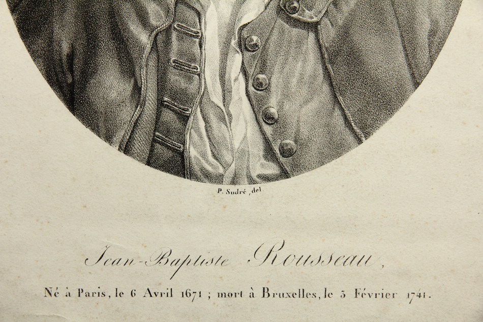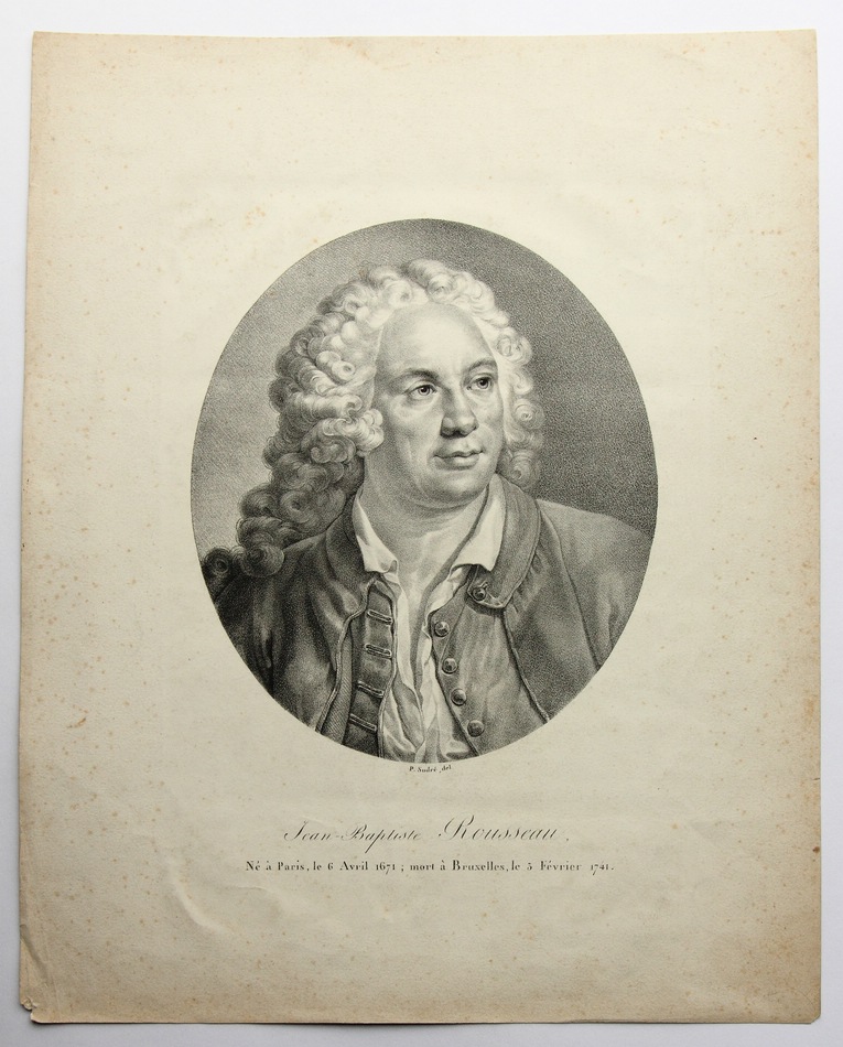 - Description: Half-profile bust portrait with curly hairstyle and casually opened shirt. Rousseau is considered an important lyricist of the early 18th century, known both for his satirical verses and his unseemly, almost malicious comments towards his contemporaries.