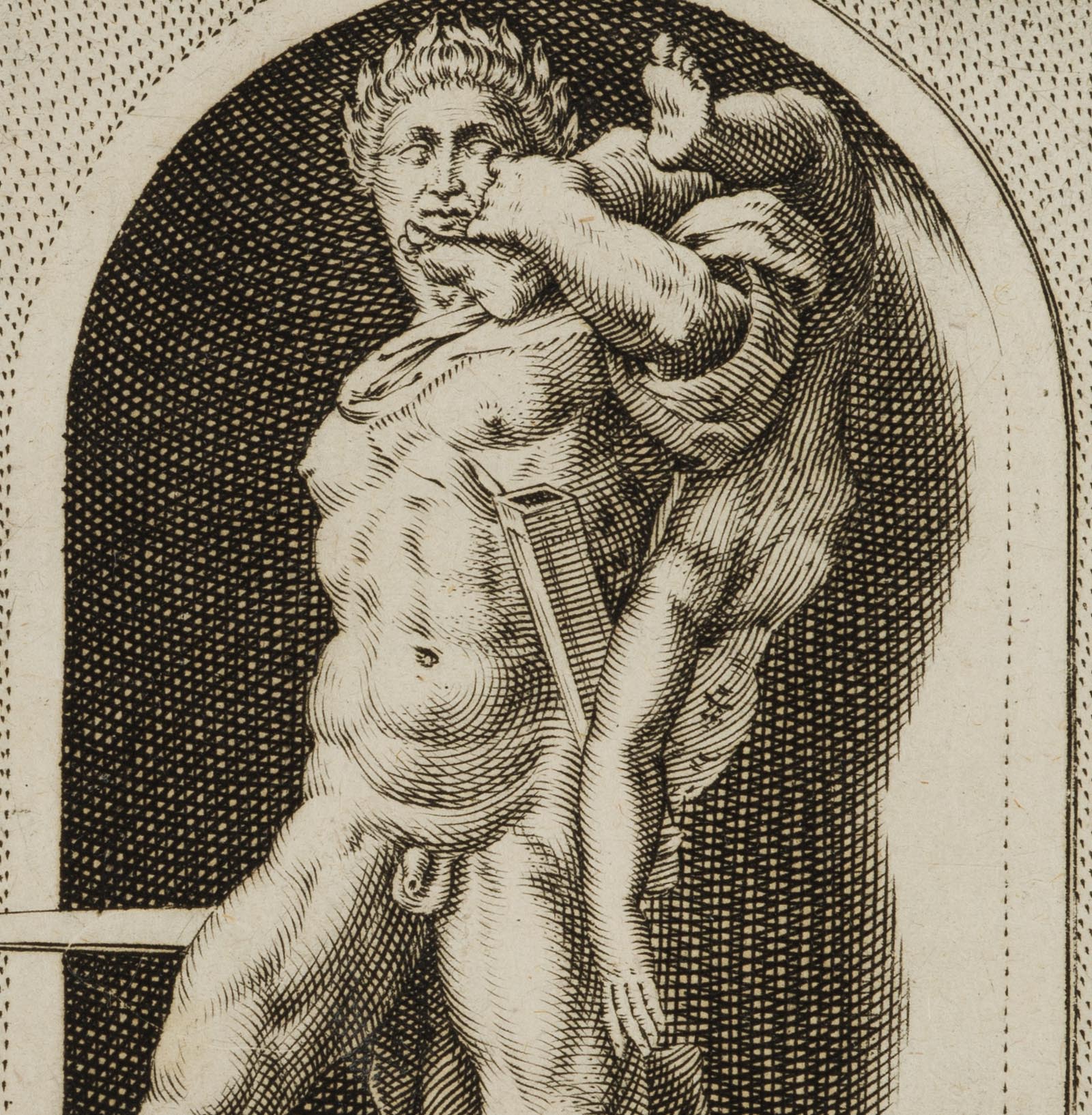 - Description: Depiction of an antique statue in a conch, from the Borghese Collection. From: Antiquarum statuarum urbis Romae liber primus, P. Thomassin, 1610. After the publication of Giovanni Battista de Cavalieri’s engraving work “Antiquarum Statuarum Urbis Romae Tertius et Quartus Liber (1594), it is regarded as the first work with independent engravings after antique statues, personally drawn and engraved by Philippe Thomassin. The French engraver was Jacques Callot’s first teacher and created over 430 engravings, many of them after paintings by Italian masters such as Michelangelo.