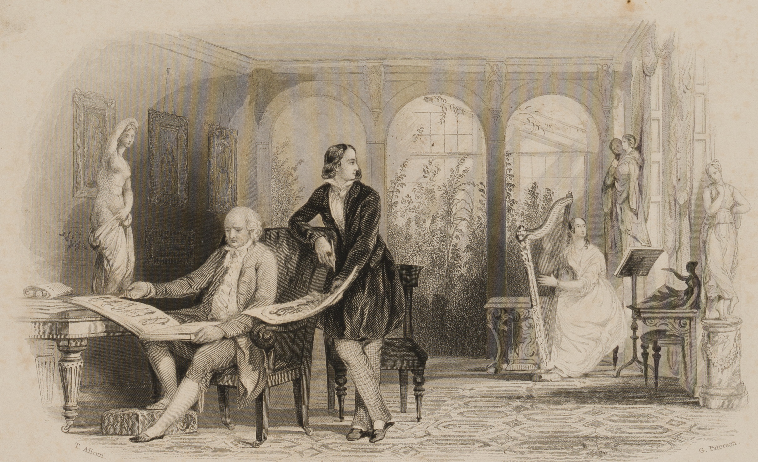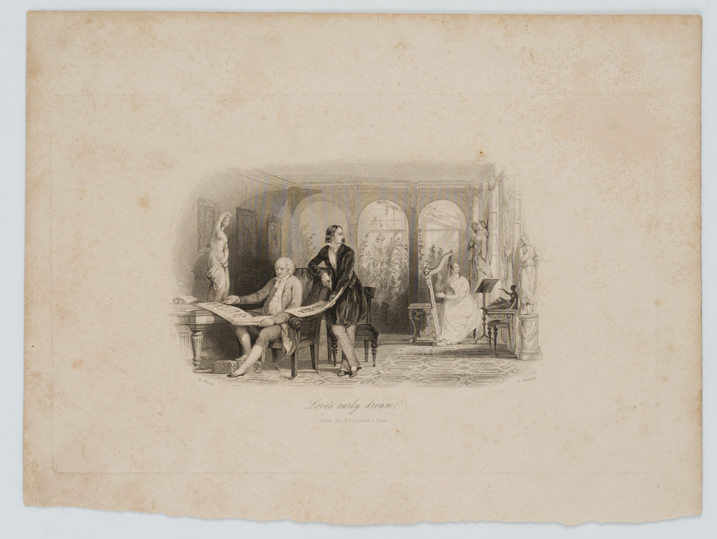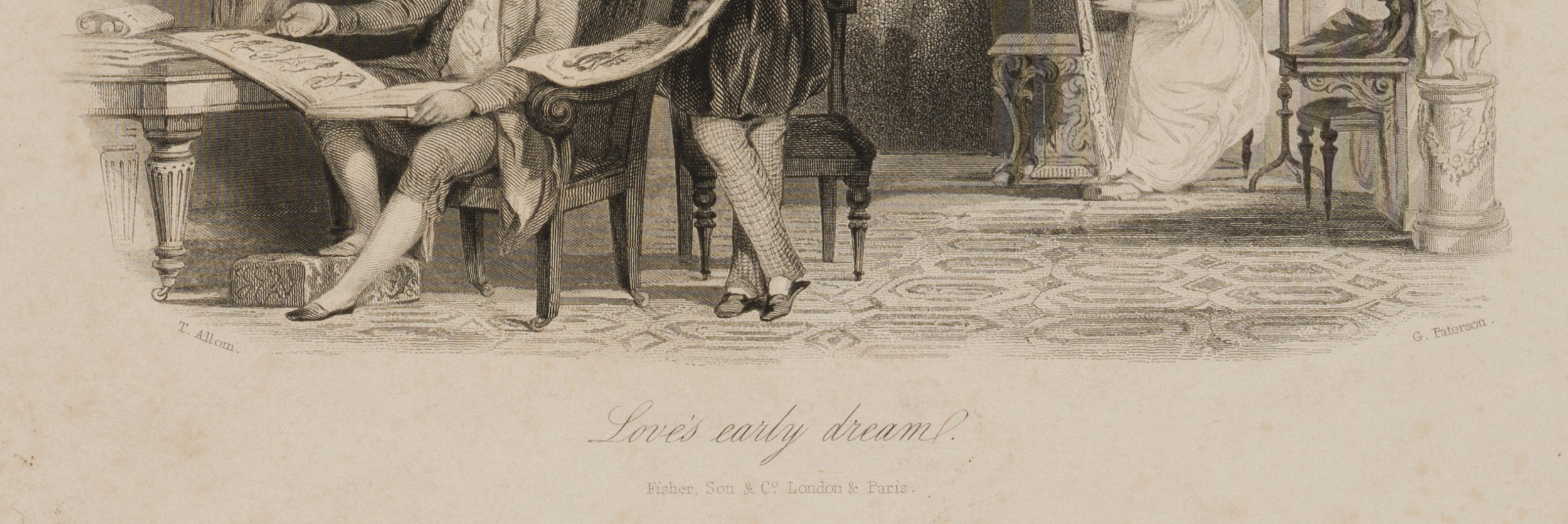 - Inscription: Lower middle signed in the printing plate: “T. Allom. | G. Paterson”. Lower middle inscribed in the printing plate: “Loves early dream”.