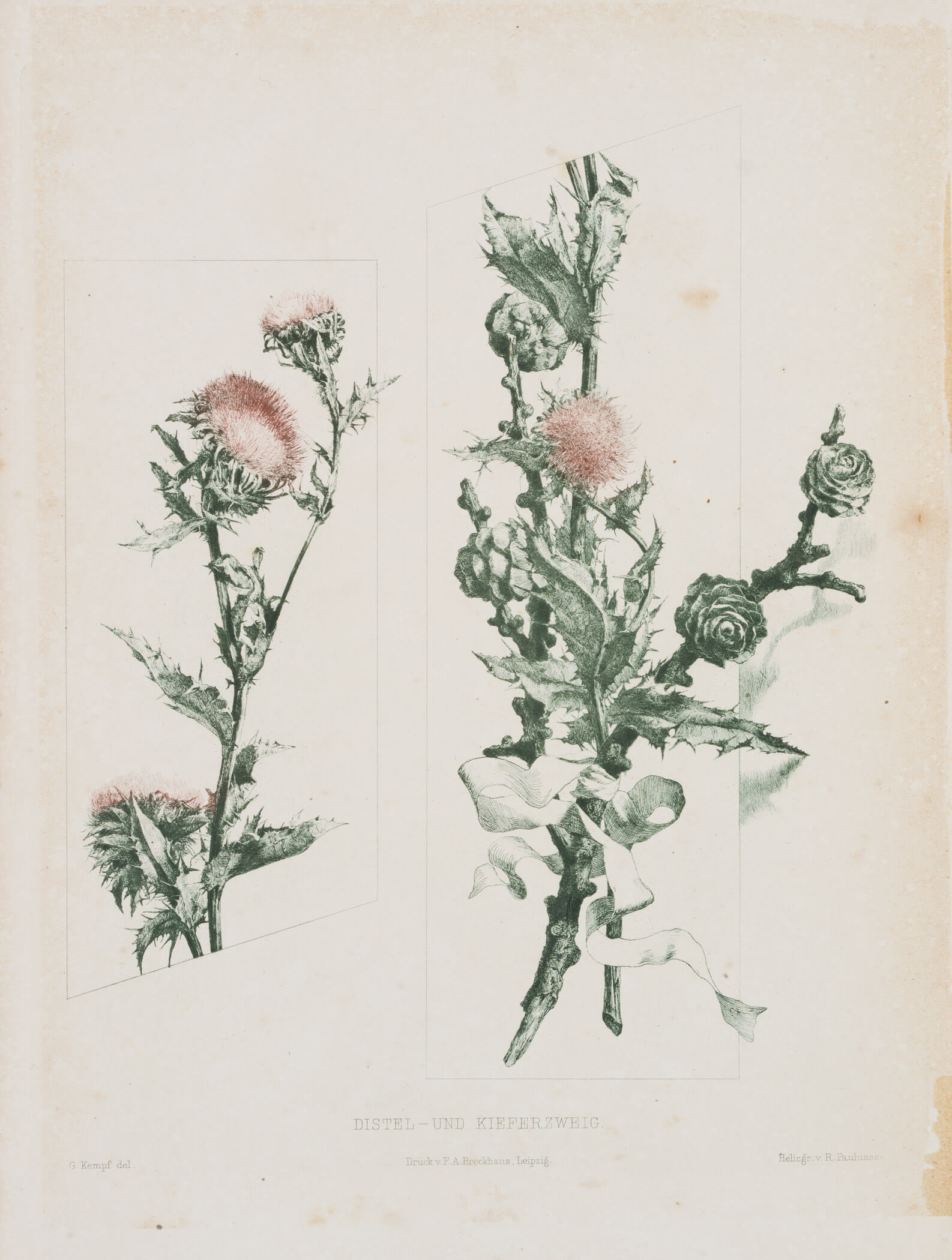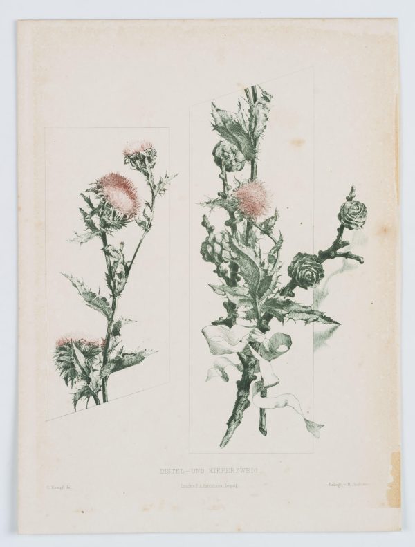 Richard Paulussen (1852 – 1906 ) after G. Kempf (19th century), Botan Darst Thistle/Pine Branch, c. 1900, Photogravure