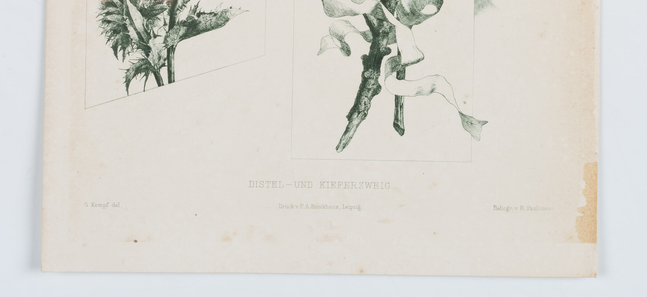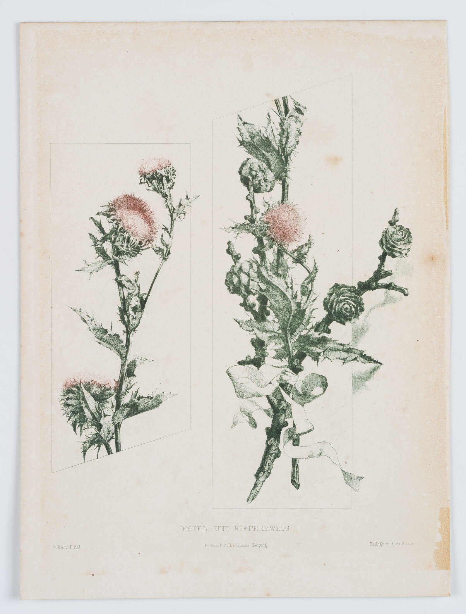 Richard Paulussen (1852 – 1906 ) nach G. Kempf (19. Jahrhundert), Botan Darst Distel/Kieferzweig, um 1900, Photogravure