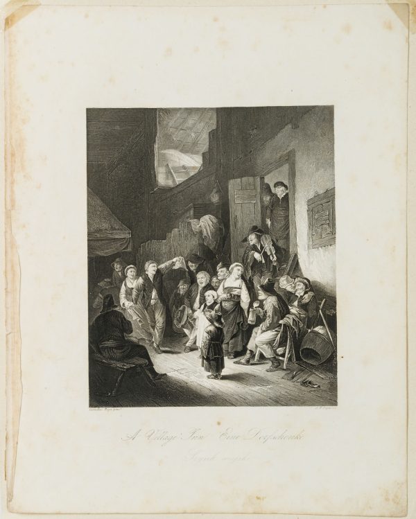 Albert Henry Payne (1812 London – 1902 Leipzig) after Cornelis Pietersz. Bega (1631 Haarlem – 1664 ibid.), View of a village tavern, genre scene, 19th century, Steel engraving