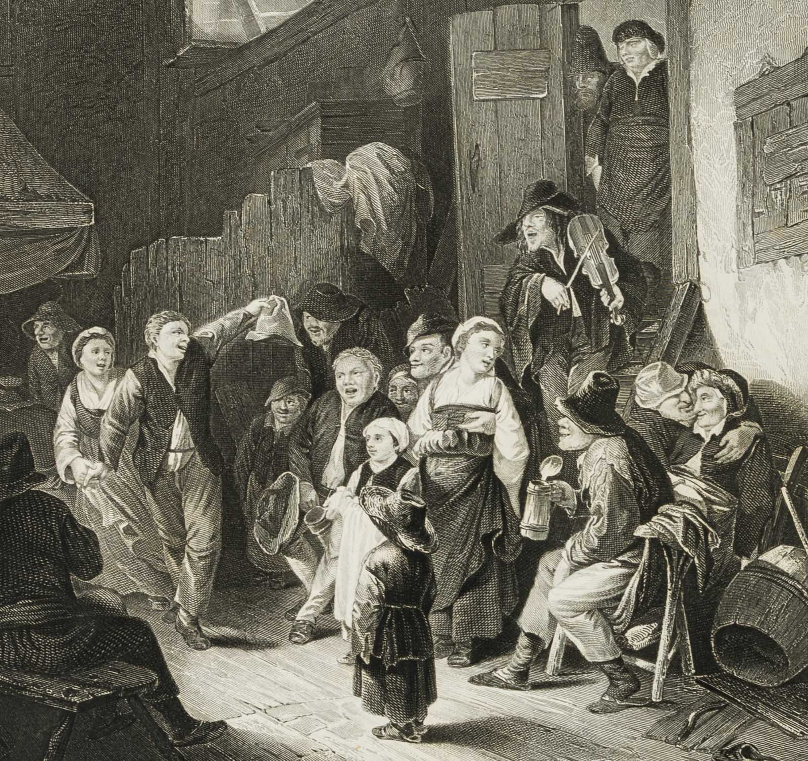 Albert Henry Payne (1812 London – 1902 Leipzig) nach Cornelis Pietersz. Bega (1631 Haarlem – 1664 ebd.), Blick in eine Dorfschenke, Genreszene, 19. Jahrhundert, Stahlstich