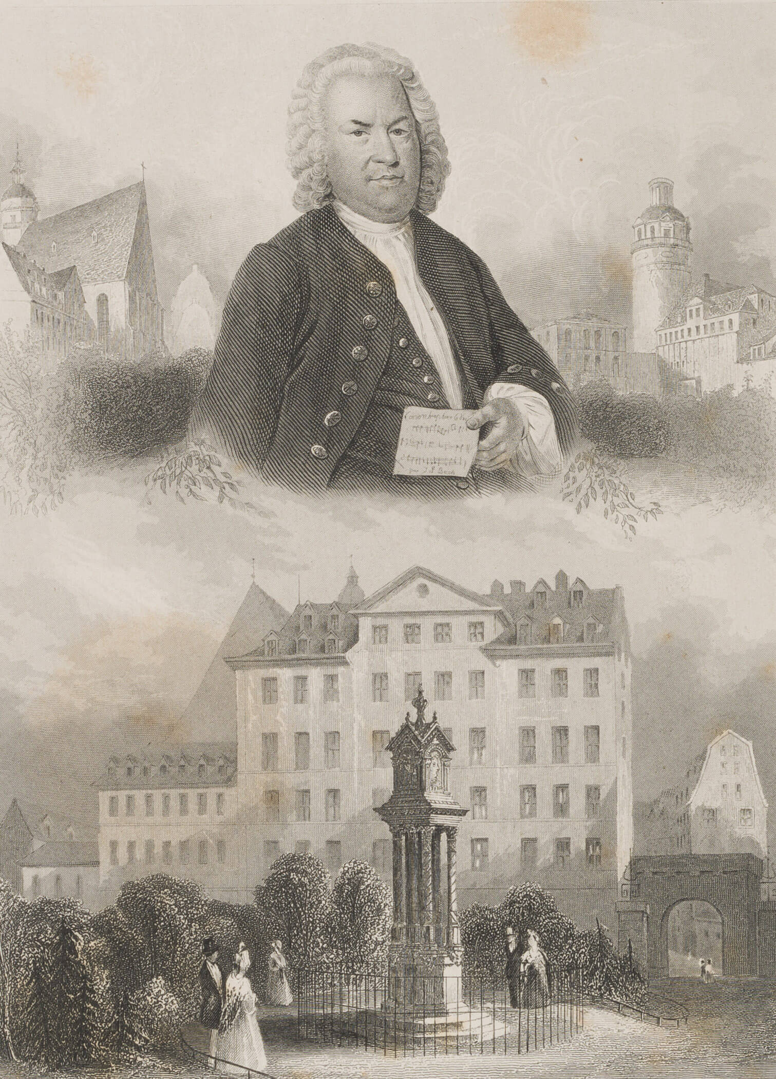 Albert Henry Payne (1812 London – 1902 Leipzig) after H. Bibby (19th century), Johann Sebastian Bach with monument, c. 1889, Steel engraving