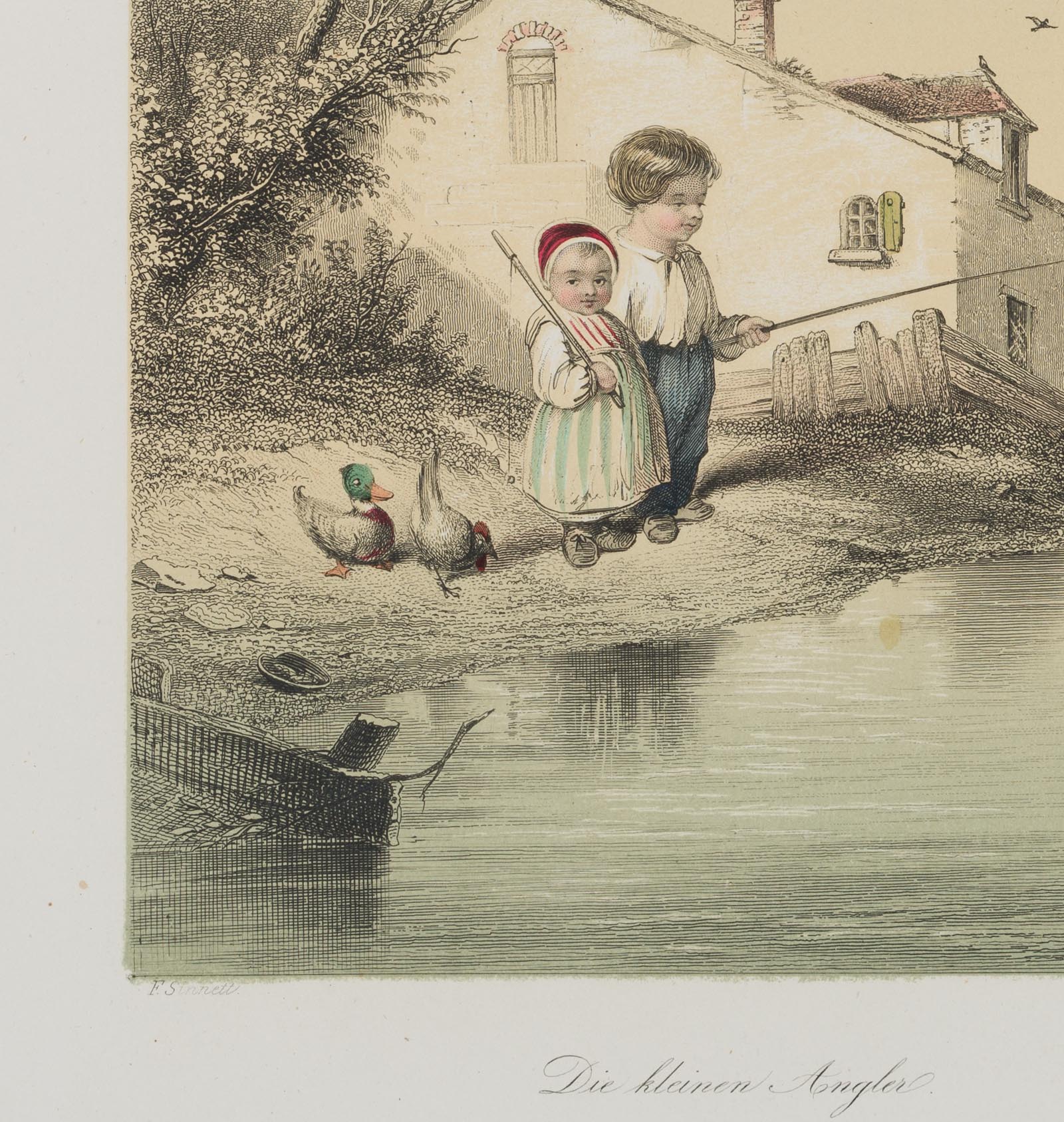 Albert Henry Payne (1812 London – 1902 Leipzig) nach Francis Sinnett (*vor 1840 ), Die kleinen Angler, 19. Jahrhundert, Stahlstich