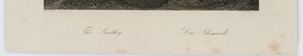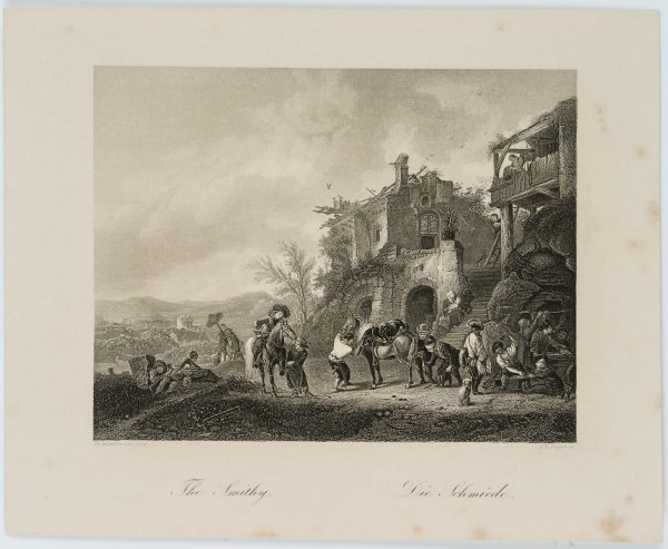 - Bezeichnung: Links unterhalb des Bildes signiert mit “Ph. Wouvermann” und rechts mit “A. W. Payne sc.”. Darunter der Titel: “The Smithy | Die Schmiede.”.