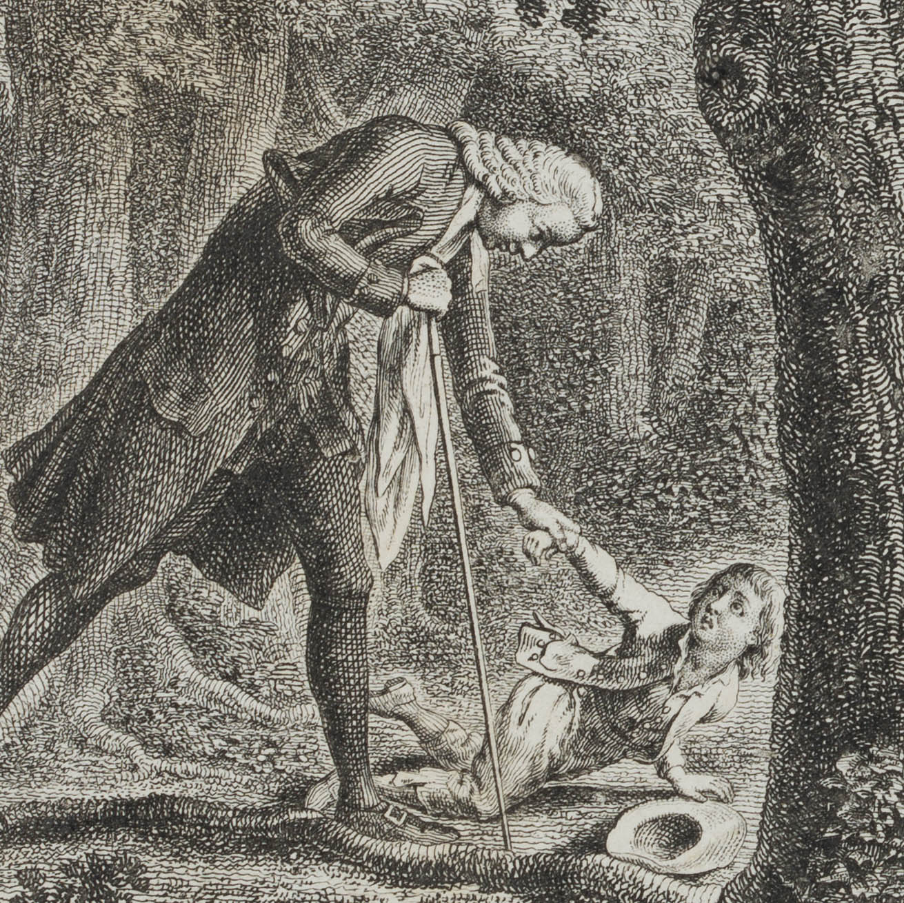 Johann Georg Penzel (1754 Hersbruck – 1809 Leipzig) after Daniel Nikolaus Chodowiecki (1726 Gdansk – 1801 Berlin), ‘Uhuhu’, man in the forest chasing a boy, 18th century, Copper engraving