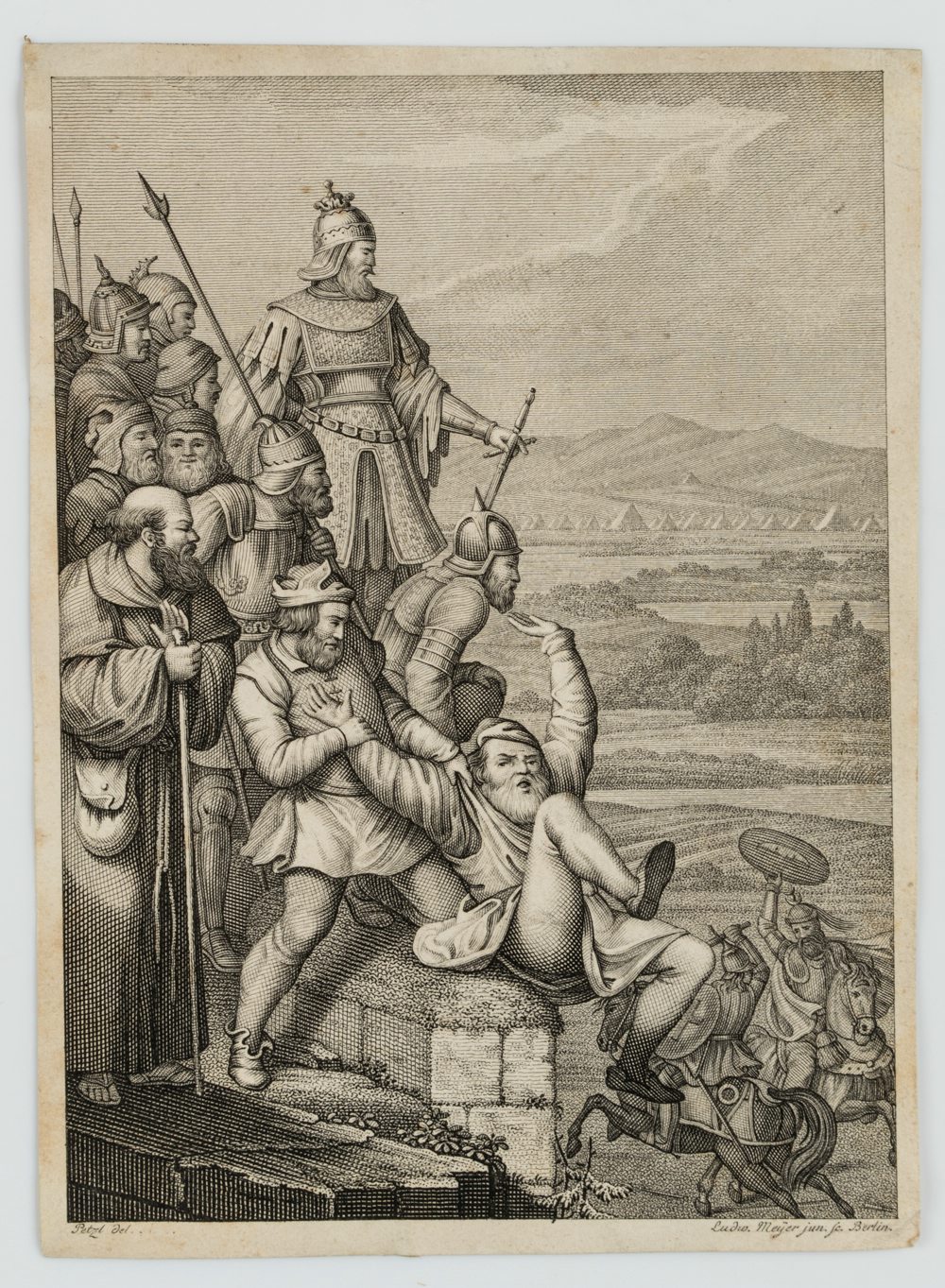 Joseph Petzl (1803 München – 1871 ebd.) nach Ludwig Meyer (19. Jahrhundert), Historienbild, Mauersturz eines Gemeinen, 19. Jahrhundert, Stahlstich