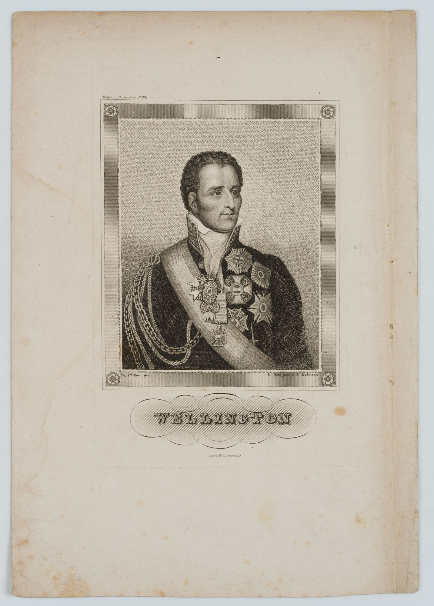 - Beschreibung: Wellesley war Feldmarschall und britischer Militärführer der napoleonischen Zeit sowie britischer Außen- und zweimal Premierminister. Er siegte über Napoleon in der Schlacht bei Waterloo. Das Blatt stammt aus Meyer’s Conversations Lexikon N.90.
