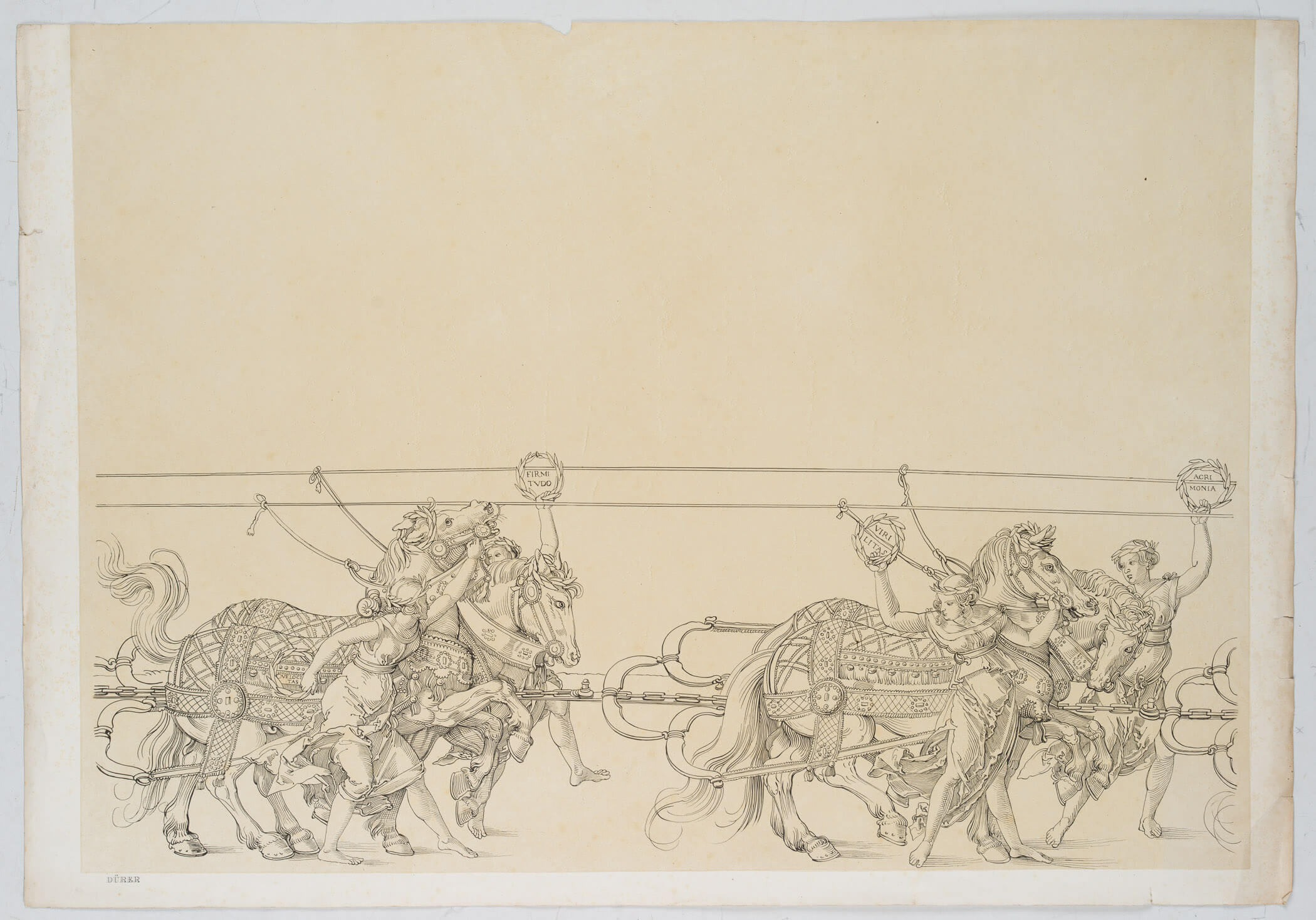 Giacomo Pilizotti (19. Jahrhundert) nach Albrecht Dürer (1471 Nürnberg – 1528 ebd.), Teil des Triumphwagens Kaiser Maximilian I., um 1850, Lithographie