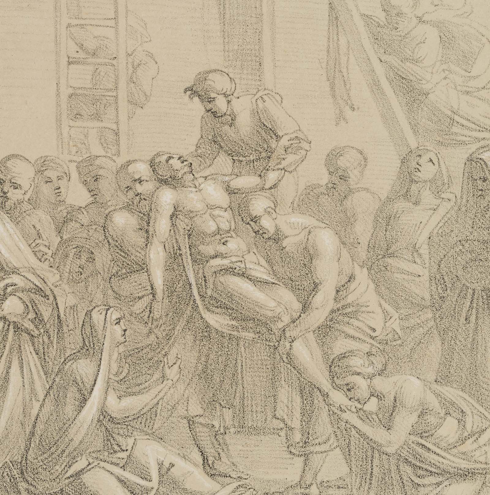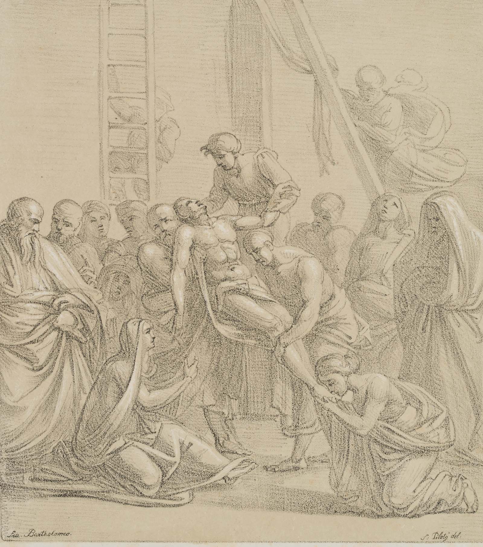 Ferdinand Piloty sen. (1786 Homburg – 1844 Munich) after Fra Bartolomeo (1472 Florence – 1517 ibid.), “Deposition from the Cross”, Winkler No 965, 244, incunabulum of lithography, 1811-1816, c. 1811, Lithography