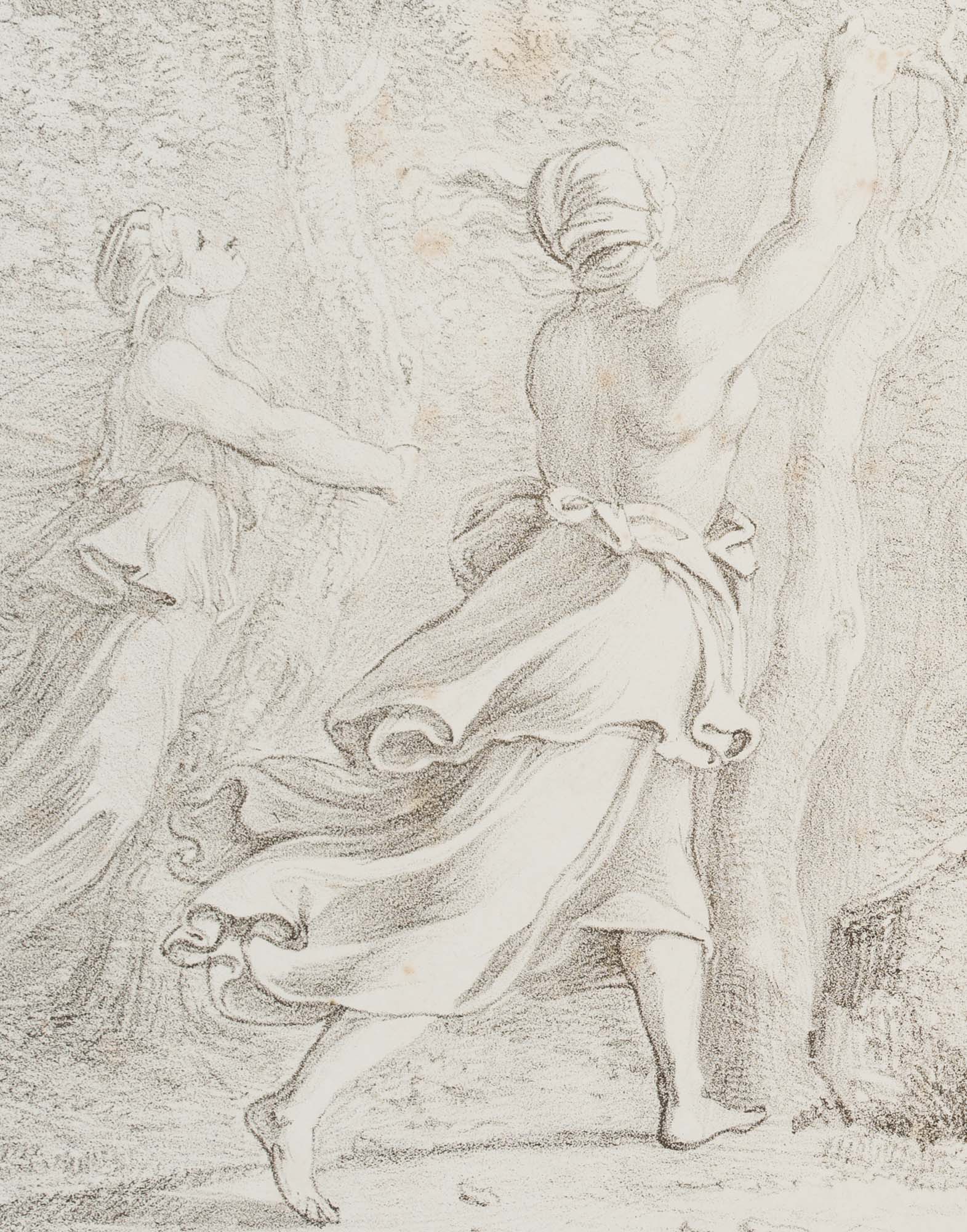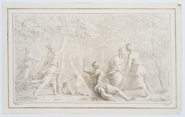 Ferdinand Piloty sen. (1786 Homburg – 1844 Munich) after Polidoro da Caravaggio (1493 Caravaggio – 1543 Messina), “River God and Nymphs in the Forest”, Incunabulum of Lithography, c. 1815, Lithography