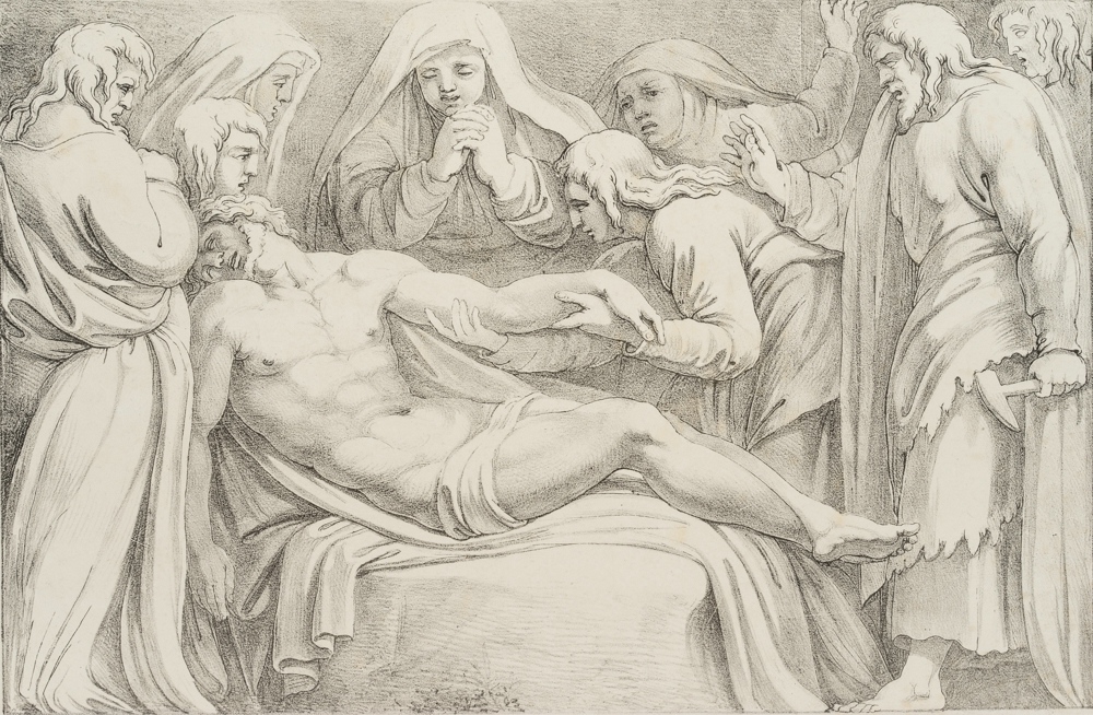 Ferdinand Piloty sen. (1786 Homburg – 1844 Munich) after Giovanni Battista Franco (1743 Anzo D’Intelvi (Como) – 1830 Cagliari), Entombment of Christ, 19th century, Lithography