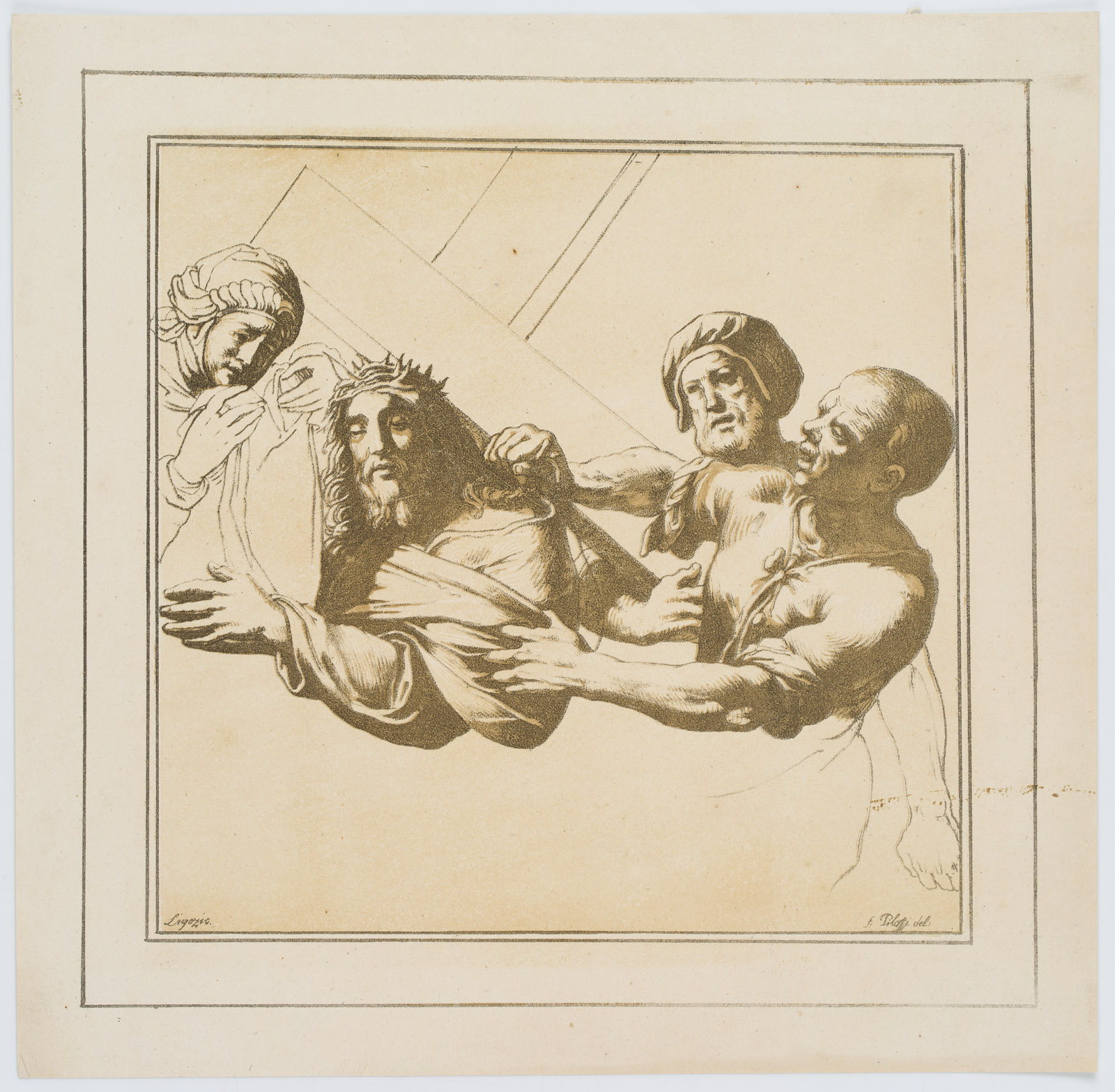 Ferdinand Piloty d. Ä. (1786 Homburg – 1844 München) nach Jacopo Ligozzi (um 1547 Verona – um 1626 Florenz), Kreuztragung Christi, Inkunabel der Lithographie, um 1811, Lithographie