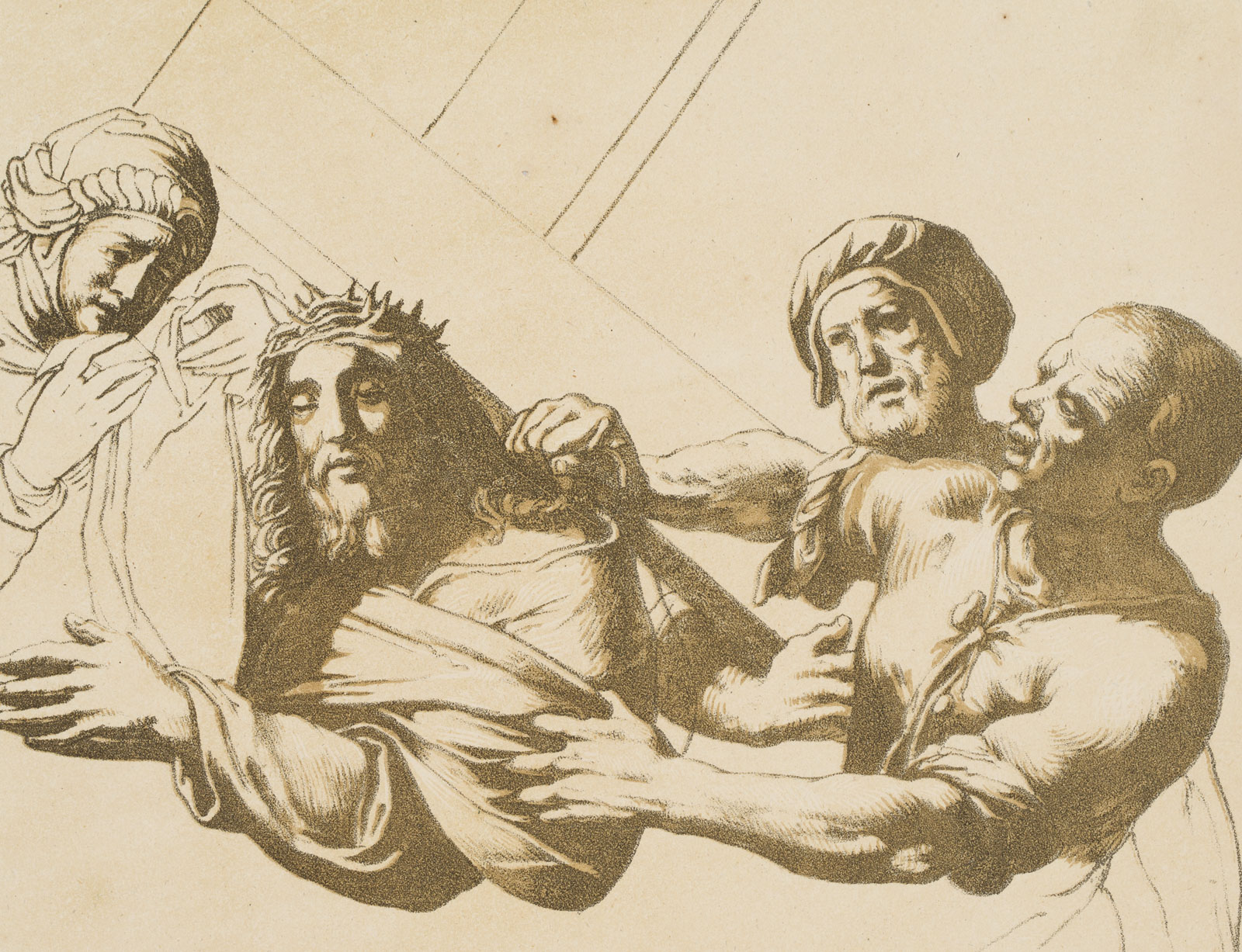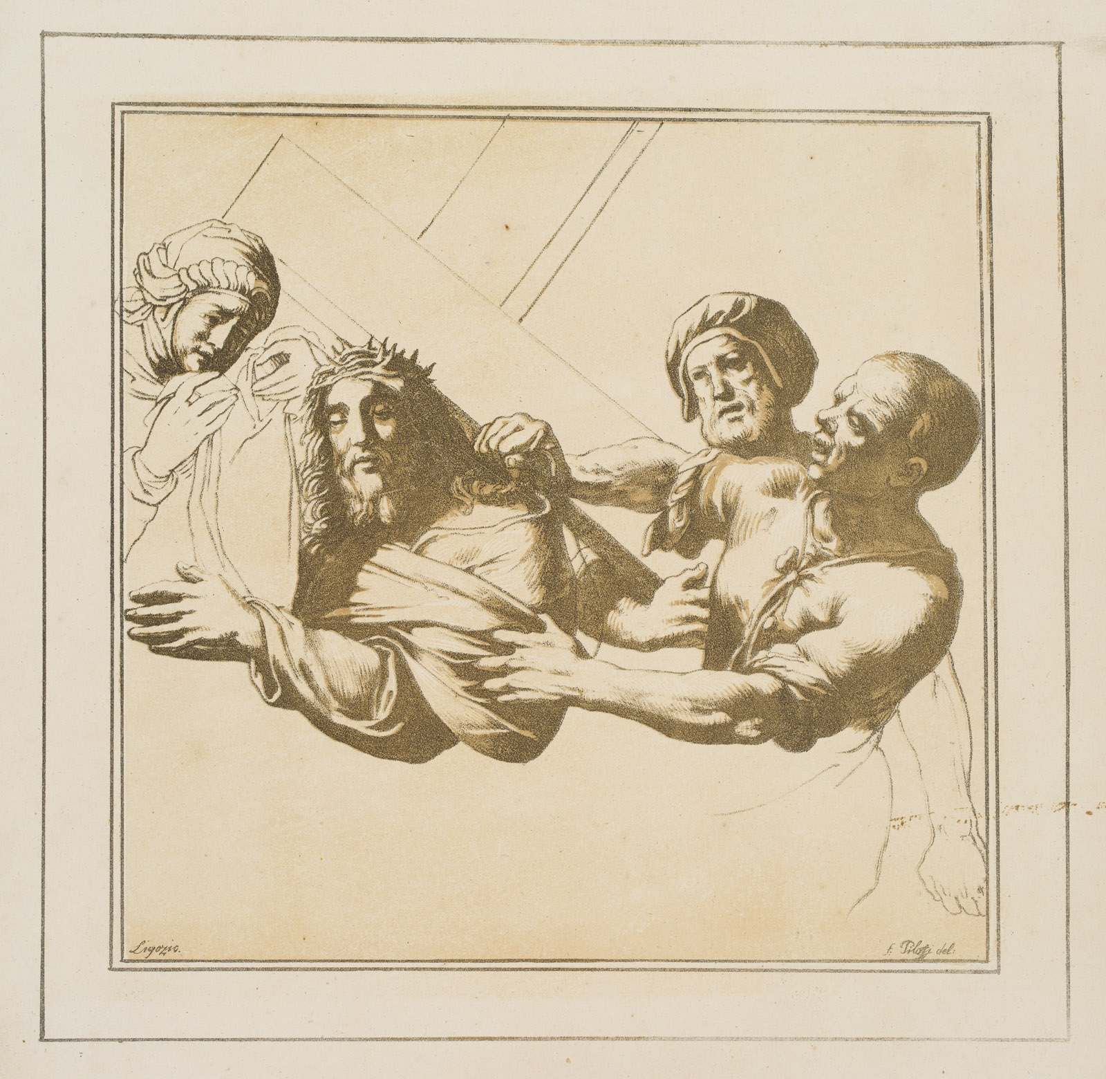 Ferdinand Piloty sen. (1786 Homburg – 1844 Munich) after Jacopo Ligozzi (around 1547 – around 1626 ), Carrying of Christ on the Cross, Incunabulum of Lithography, c. 1811, Lithography