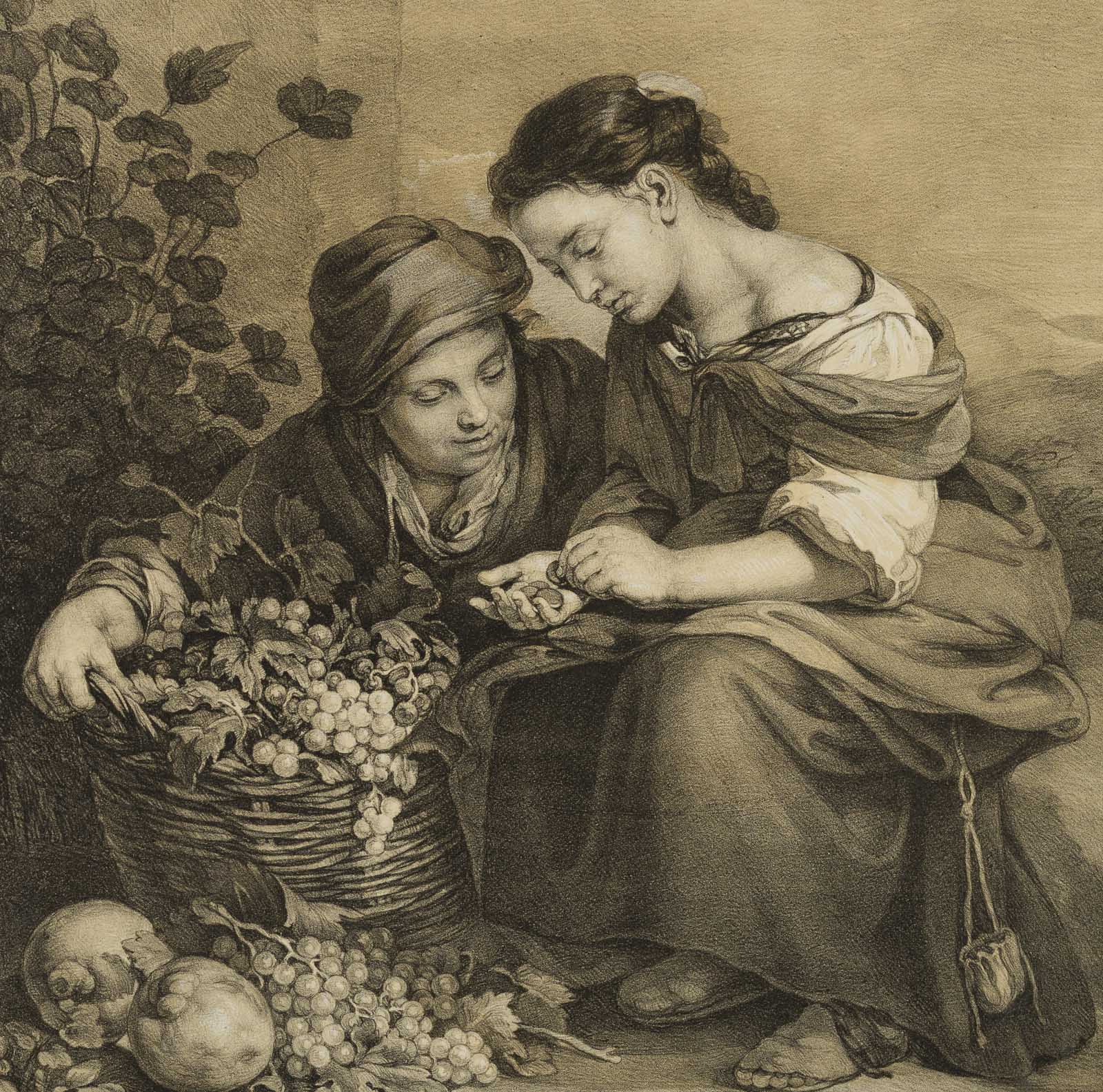 Ferdinand Piloty sen. (1786 Homburg – 1844 Munich) after Bartolomé Esteban Murillo (1618 Seville – 1682 ibid.), The fruit seller, 19th century, Lithography