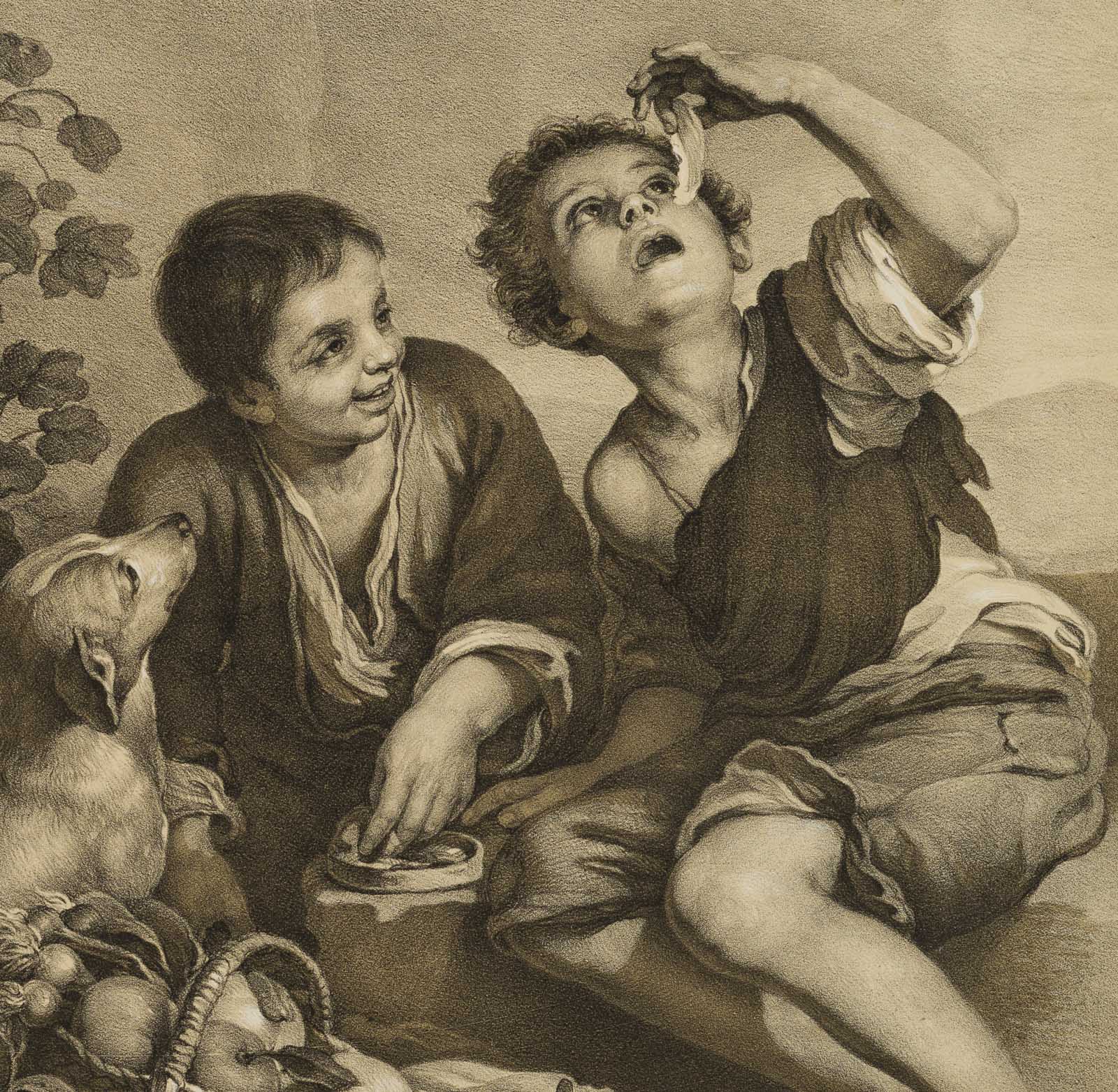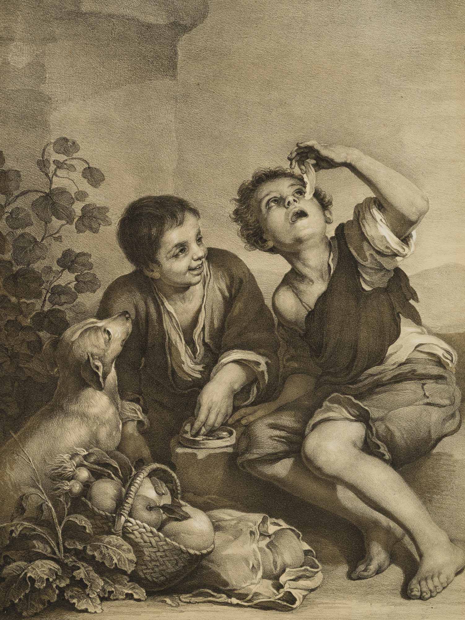 Ferdinand Piloty sen. (1786 Homburg – 1844 Munich) after Bartolomé Esteban Murillo (1618 Seville – 1682 ibid.), The pie eaters, 19th century, Lithography