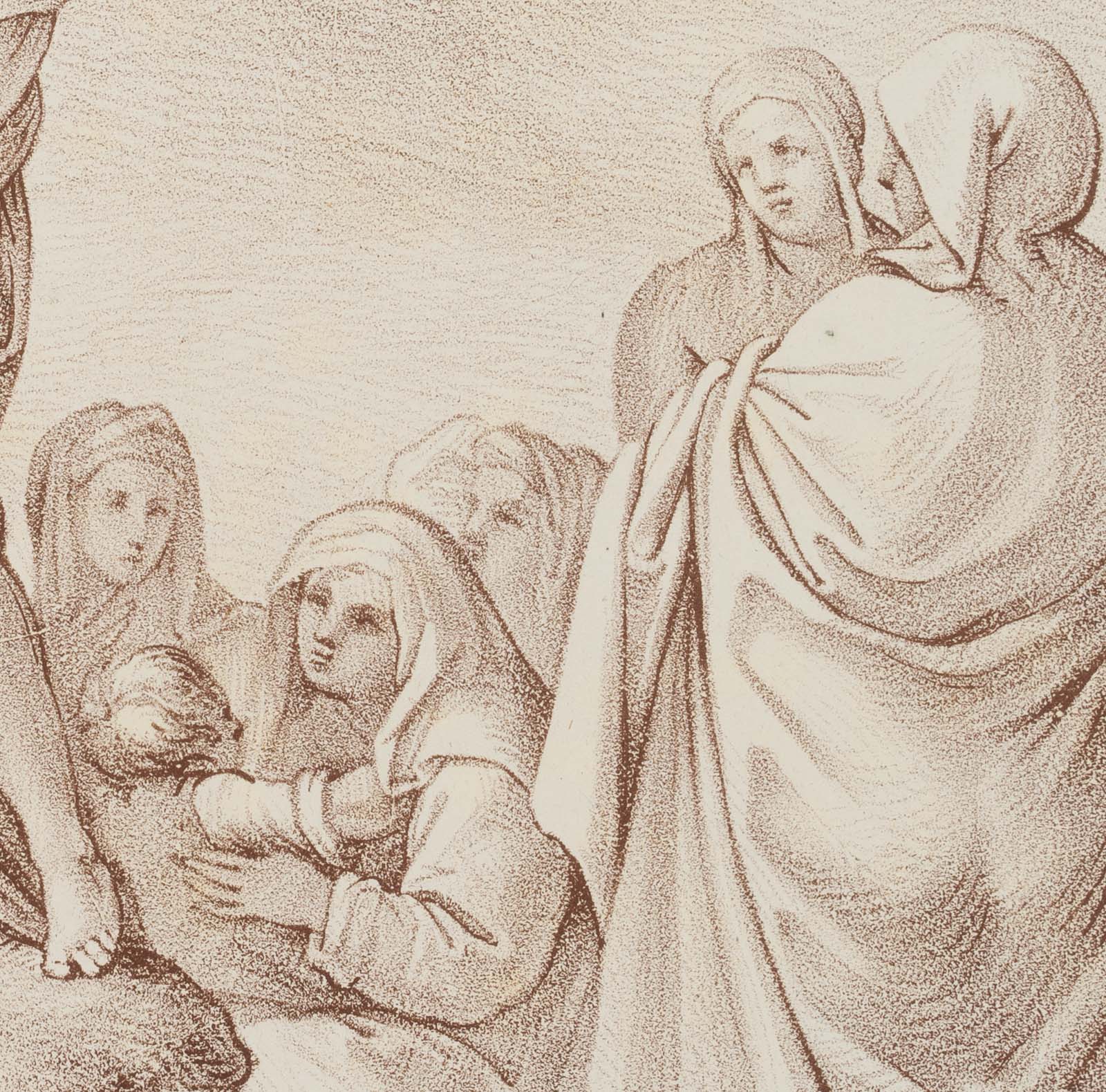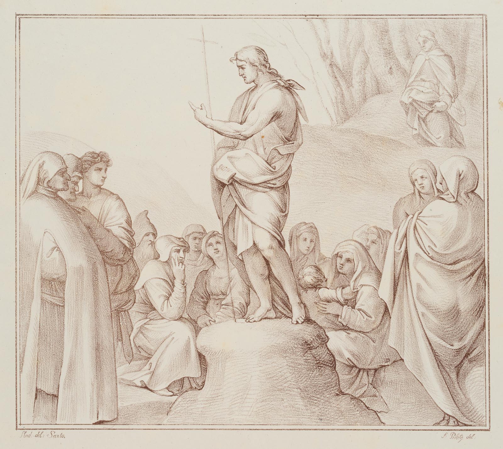 - Description: Signed under the picture: “And: del: Sarto. // f: Pilotj del:”, listed in Winkler: Die Frühzeit der Deutschen Lithographie, No. 965, 26.5 / Dussler p. 144, No. XXVI, 5. Munich 1811-16. He is standing on a stone facing to the left, around him standing and sitting audience.