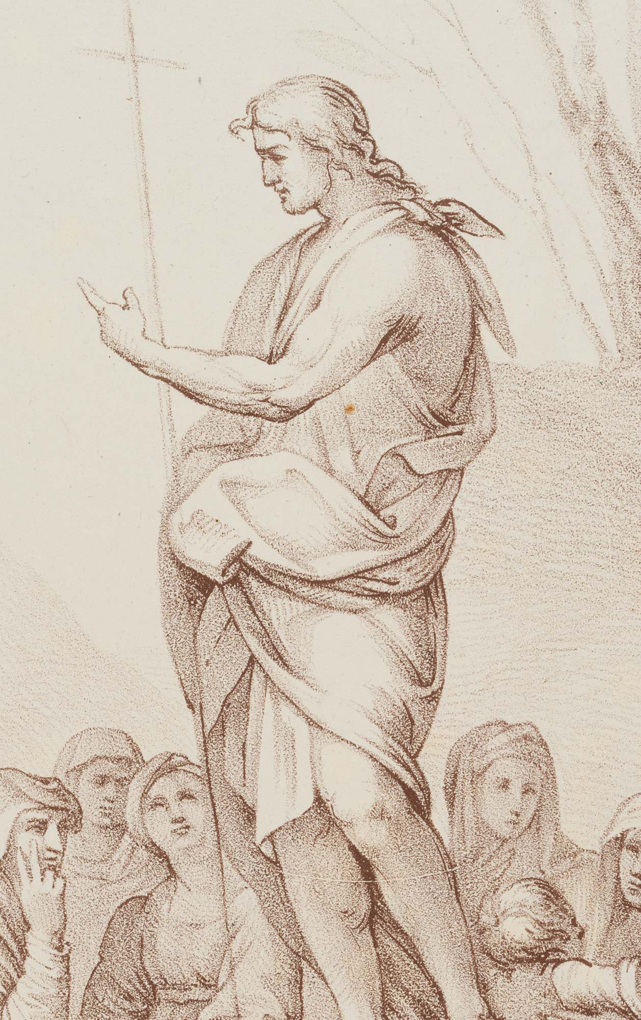 Ferdinand Piloty sen. (1786 Homburg – 1844 Munich) after Andrea del Sarto (1483 Florence – 1530 ibid.), “John the Baptist Preaching”, incunabulum of the lithograph, Winkler No 965, 265, 1811-1816, c. 1811, Lithography