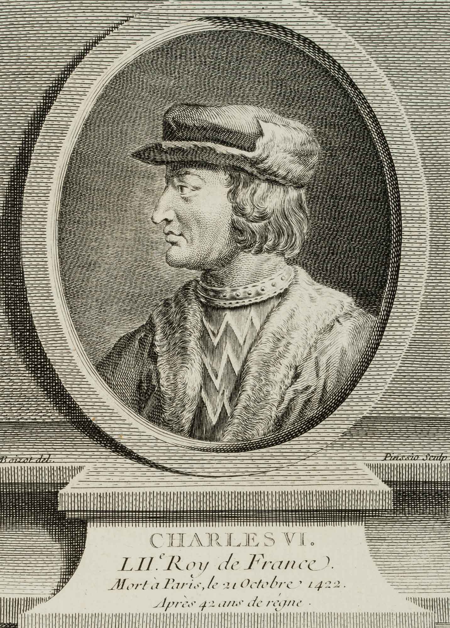 Profile portrait of Charles VI, 1380 to 1422 King of France. His epithets “The Much-Loved” or “The Mad” describe his reign. He proved to be benevolent but weak and erratic and was almost incapable of acting from 1393 onwards.