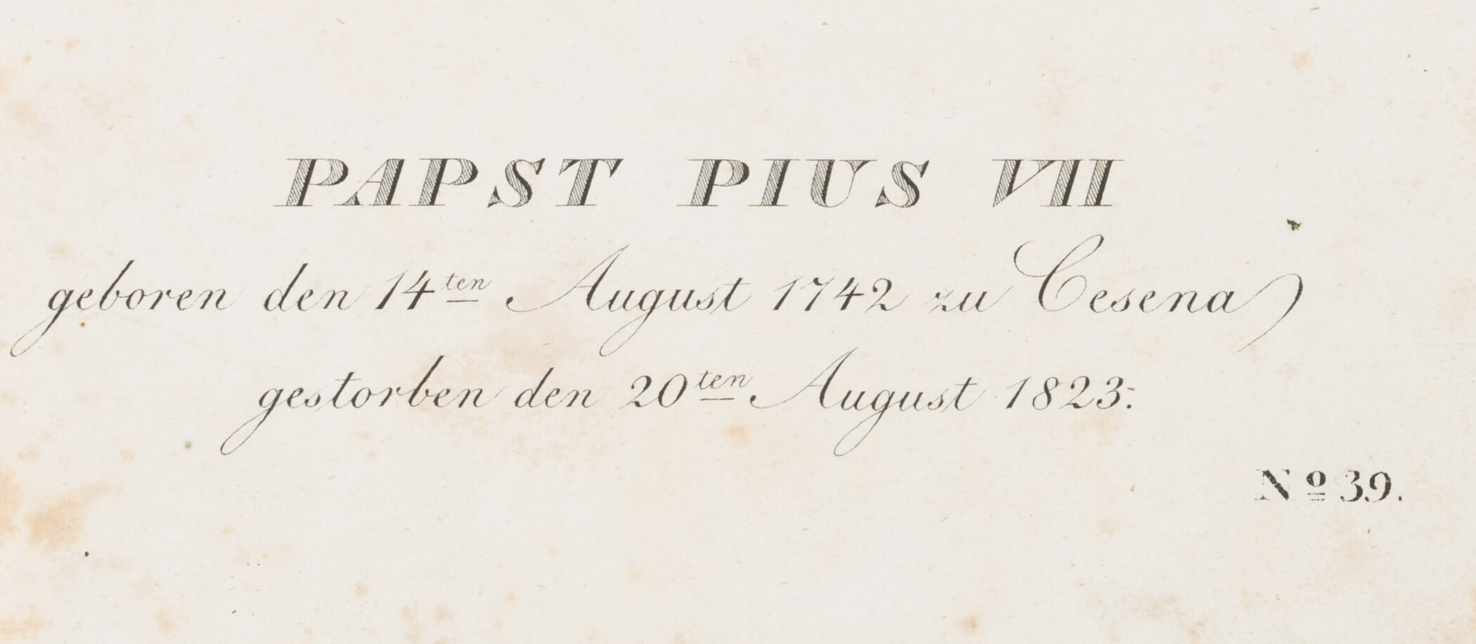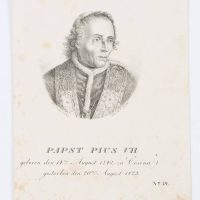 - Beschreibung: Lithographie nach dem Entwurf von Fricke mit der Darstellung des Papstes Pius VI.