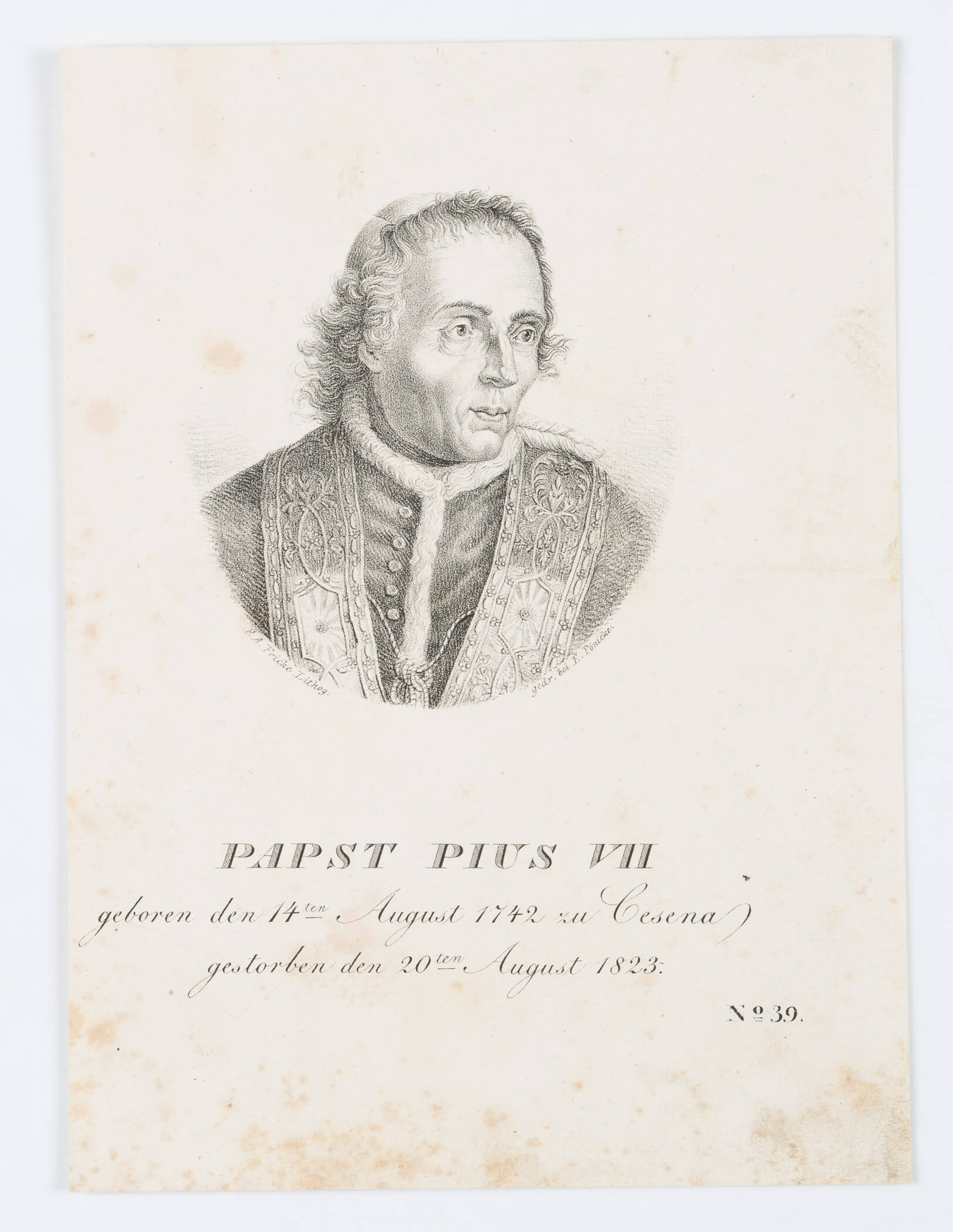 E. Pönicke (around 1800 – around 1900 ) after Friedrich August Fricke (1784 Leipzig – 1858 ibid.), Portrait of Pope Pius VII, 1880, Lithography