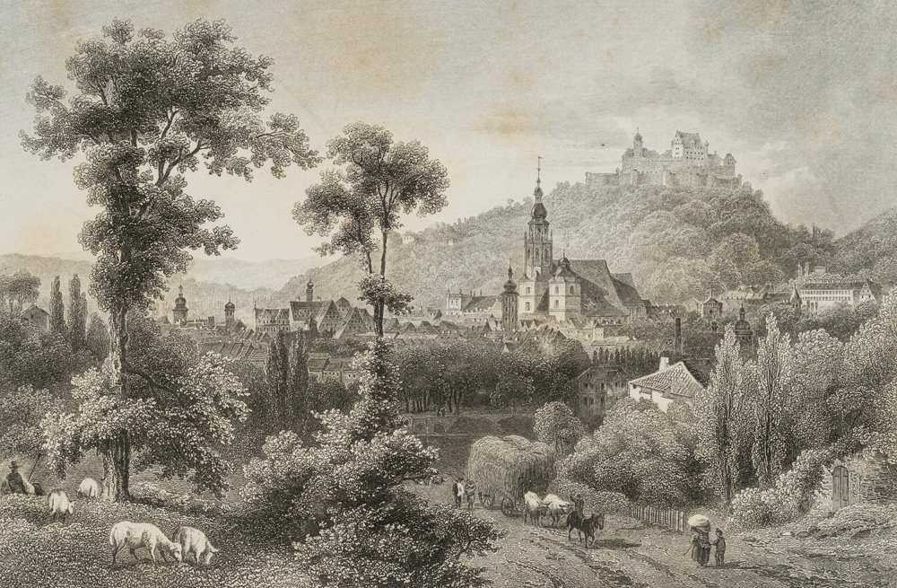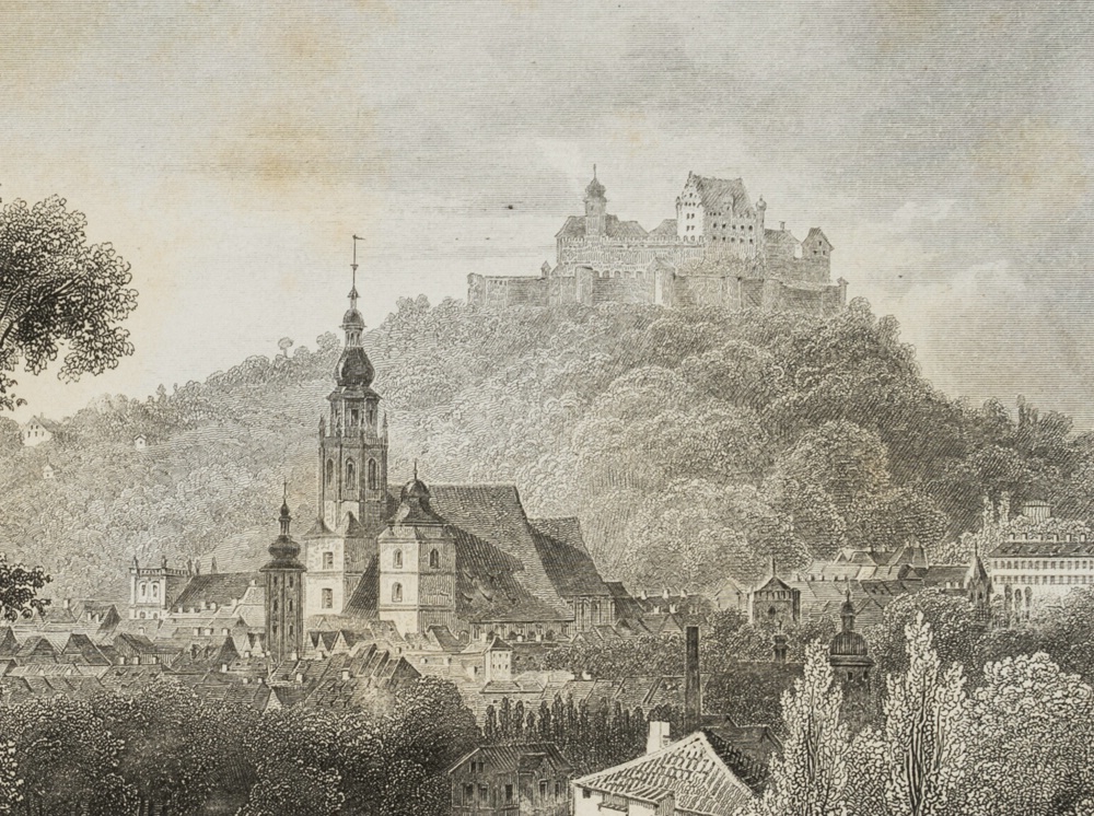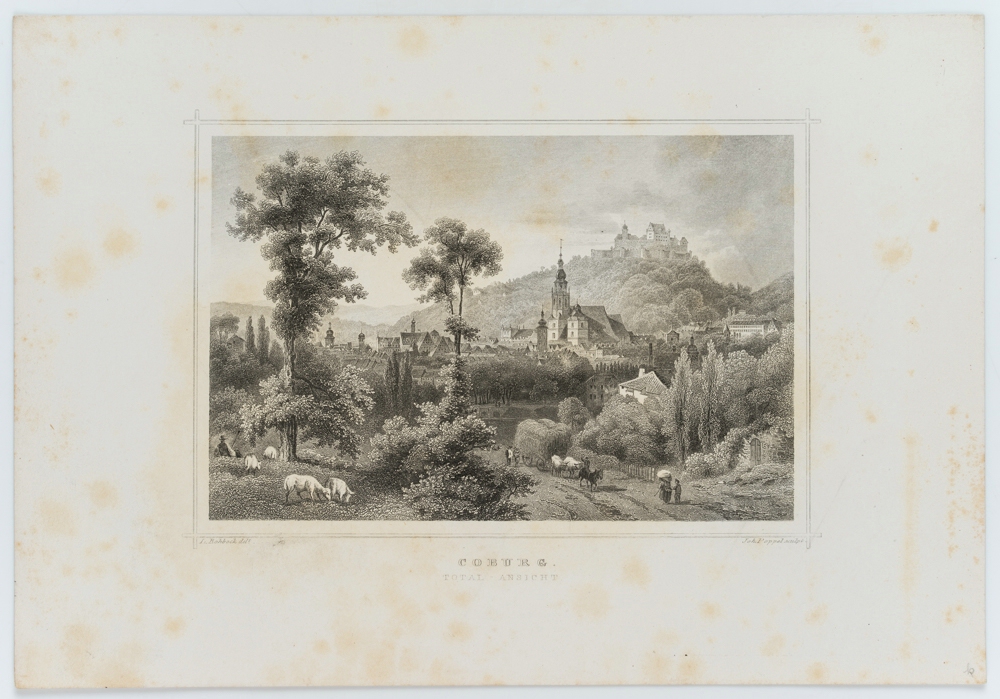 Johann Gabriel Friedrich Poppel (1807 Hammer – 1882 Ammerland) after Ludwig Rohbock (1824 Nuremberg – 1893 Munich), View of Coburg with Veste Coburg, c. 1860, Steel engraving