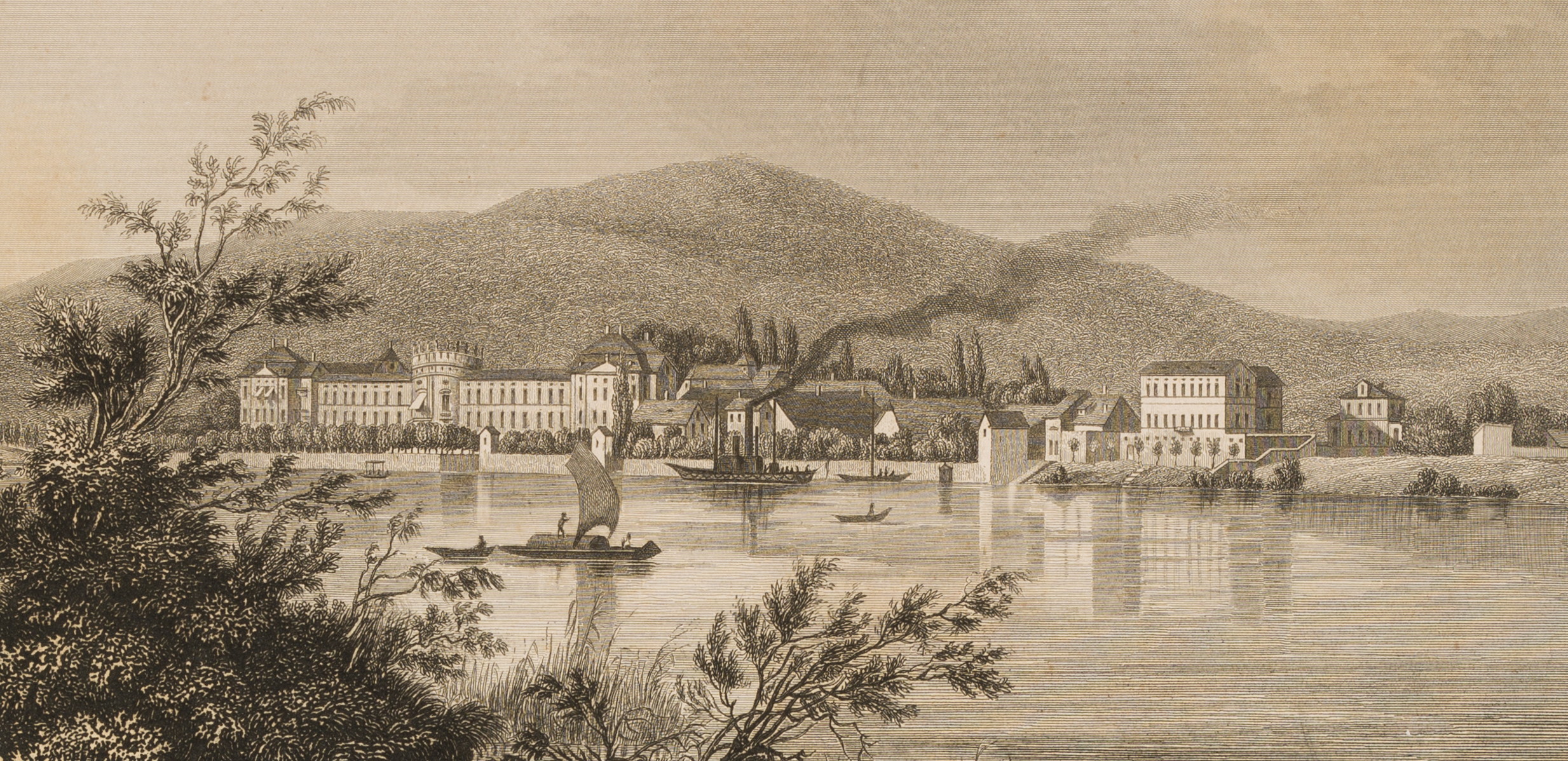 Johann Gabriel Friedrich Poppel (1807 Hammer – 1882 Ammerland) after H. Schönfeld (1809 – 1845 ), View of Biebrich View across the Rhine to Biebrich Castle, , Steel engraving