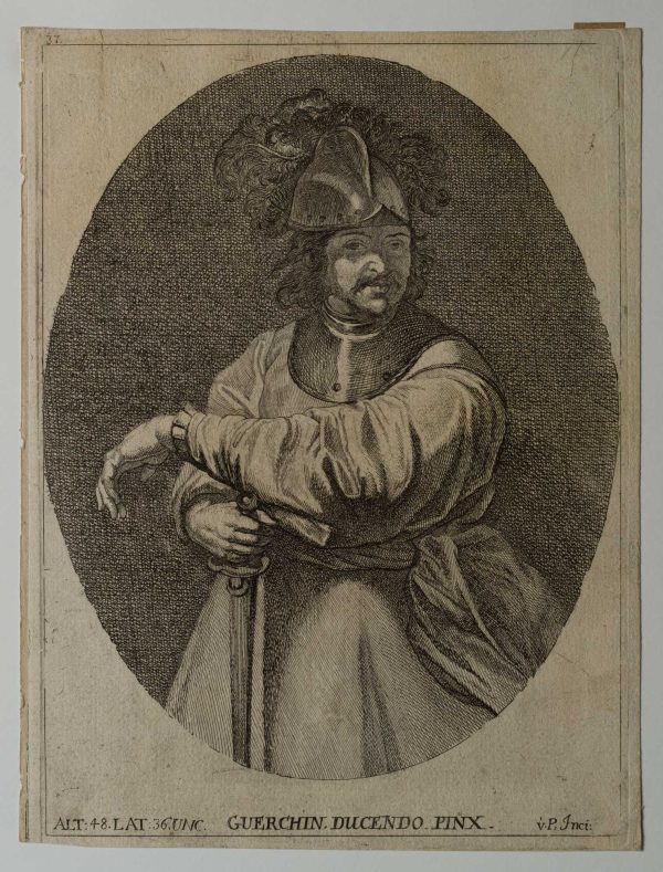 Anton Joseph von Prenner (1683 Wallerstein – 1743 Linz) after Guercino: Giovanni Francesco Barbieri (1591 Cento/Ferrara – 1666 Bologna), Portrait of a soldier, 18th century, Etching